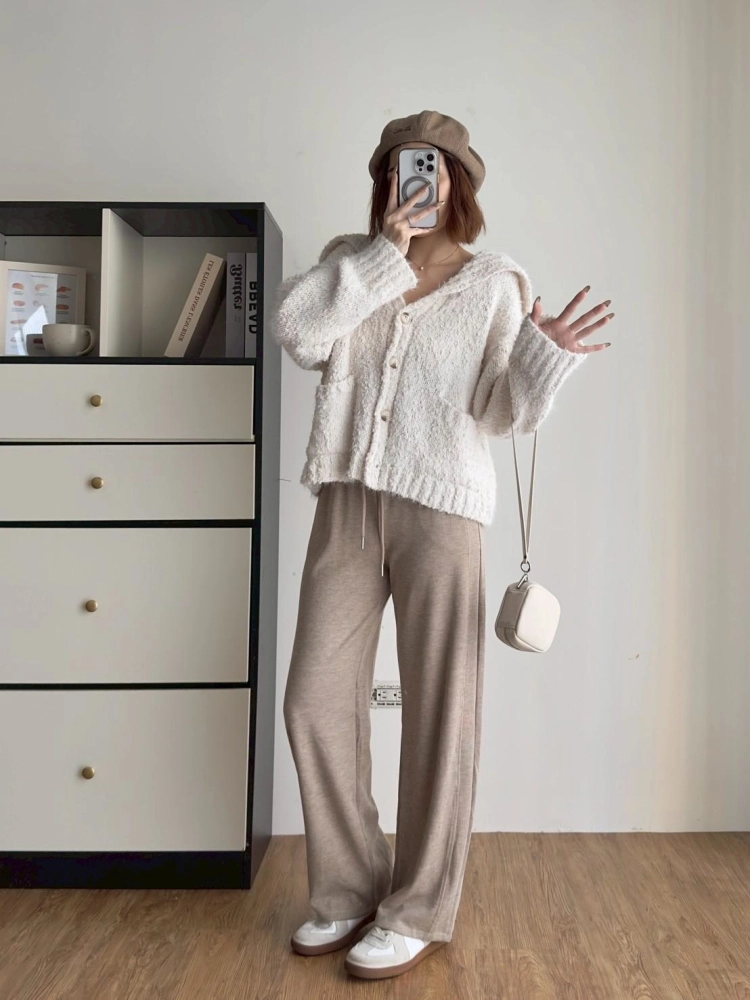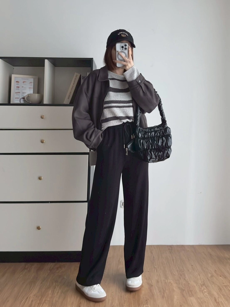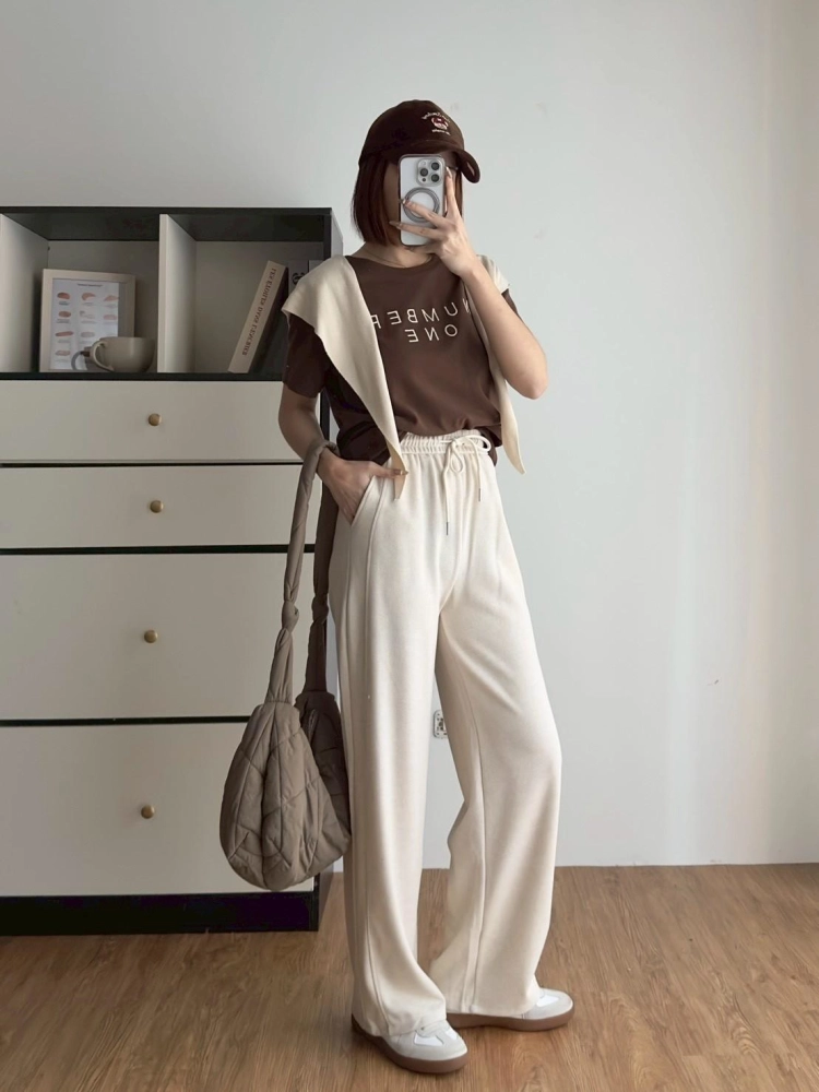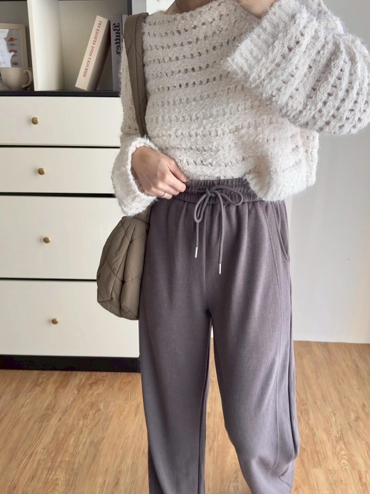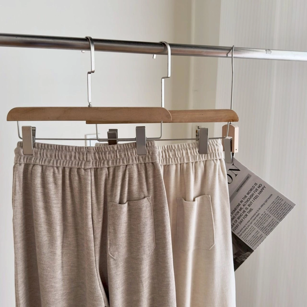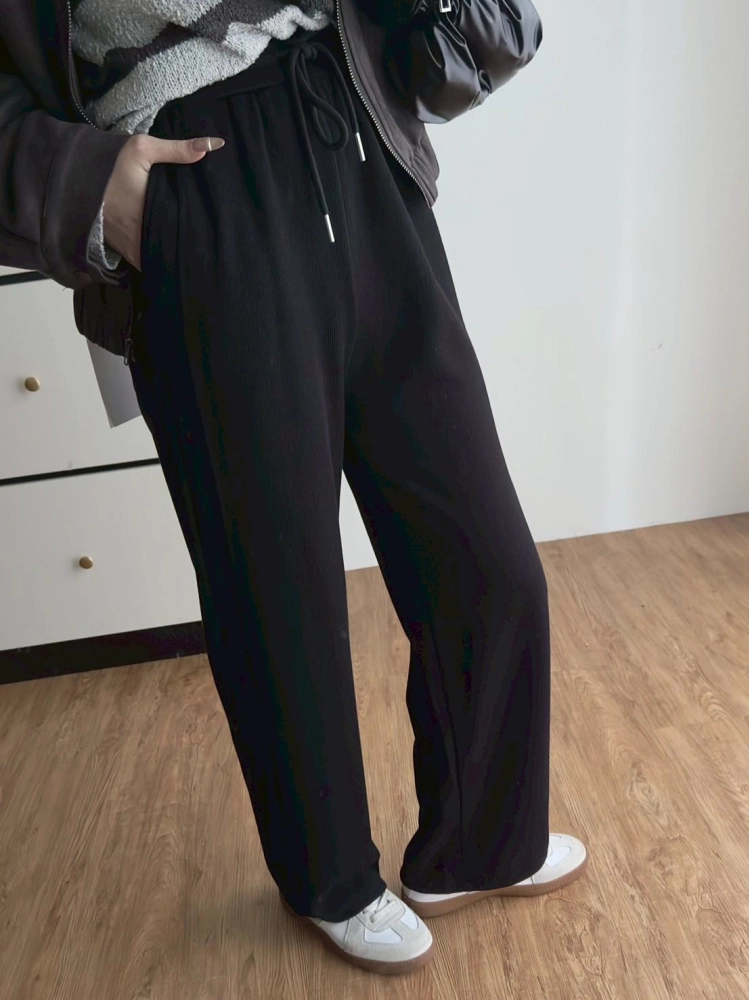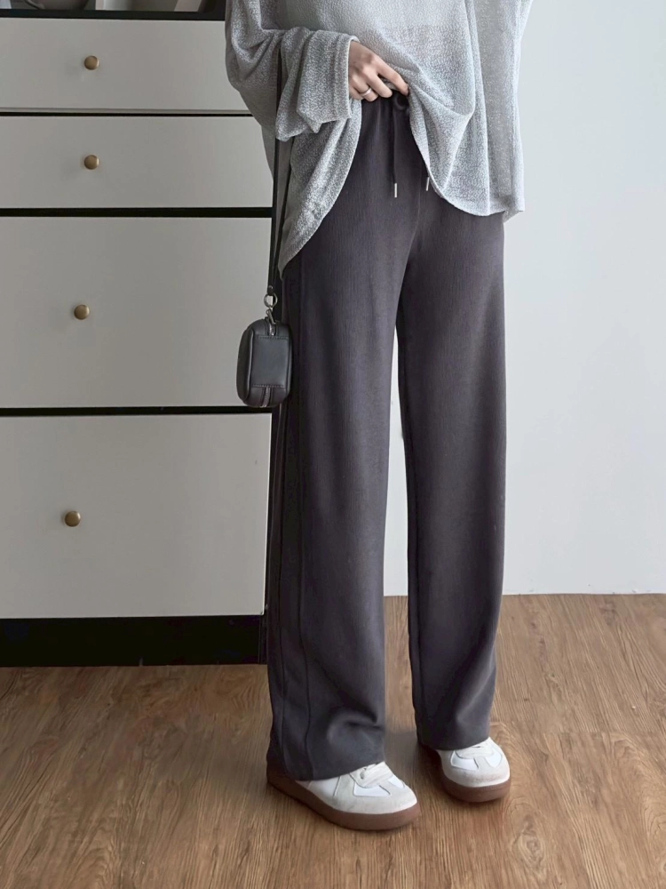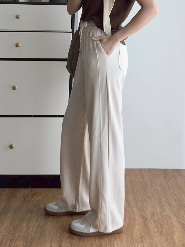 • 磨毛絨面拼接直腿寬褲(後口袋)