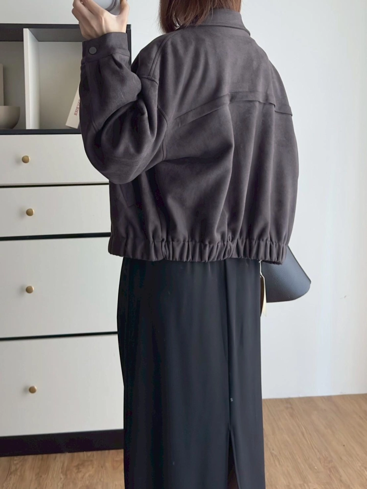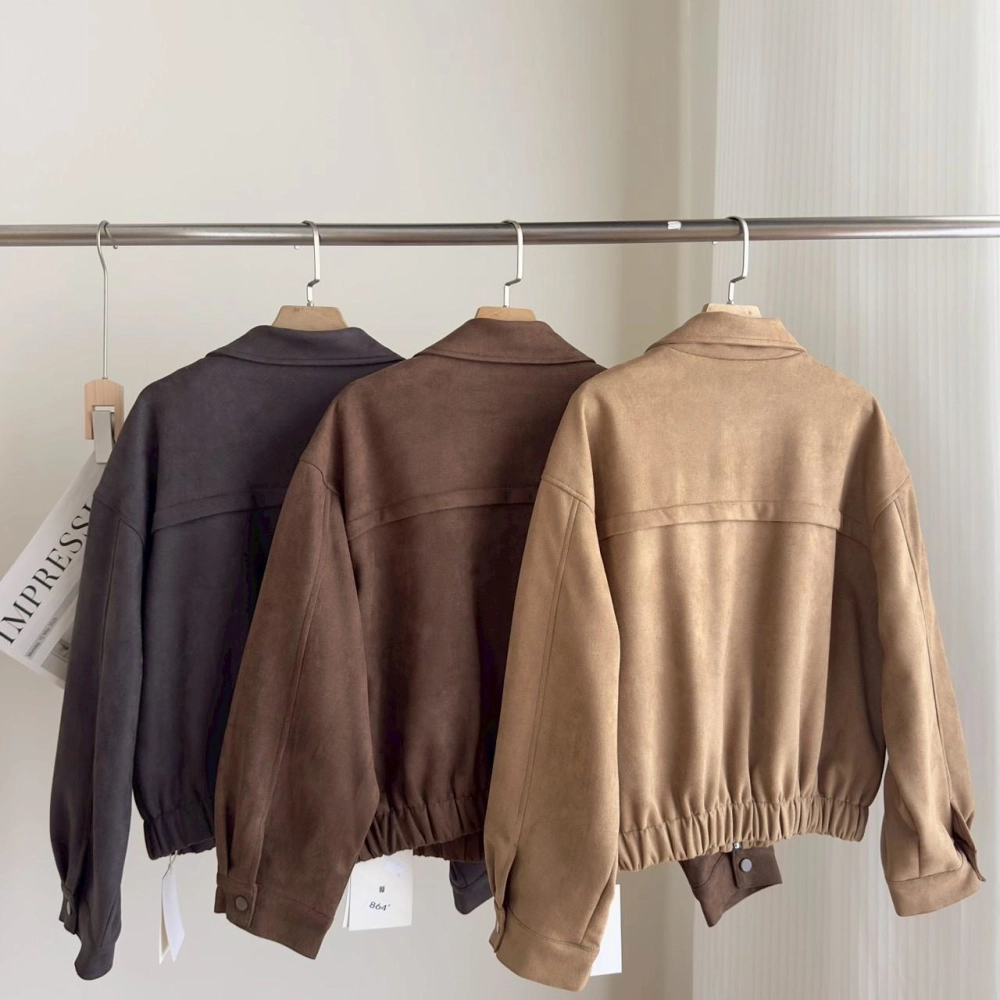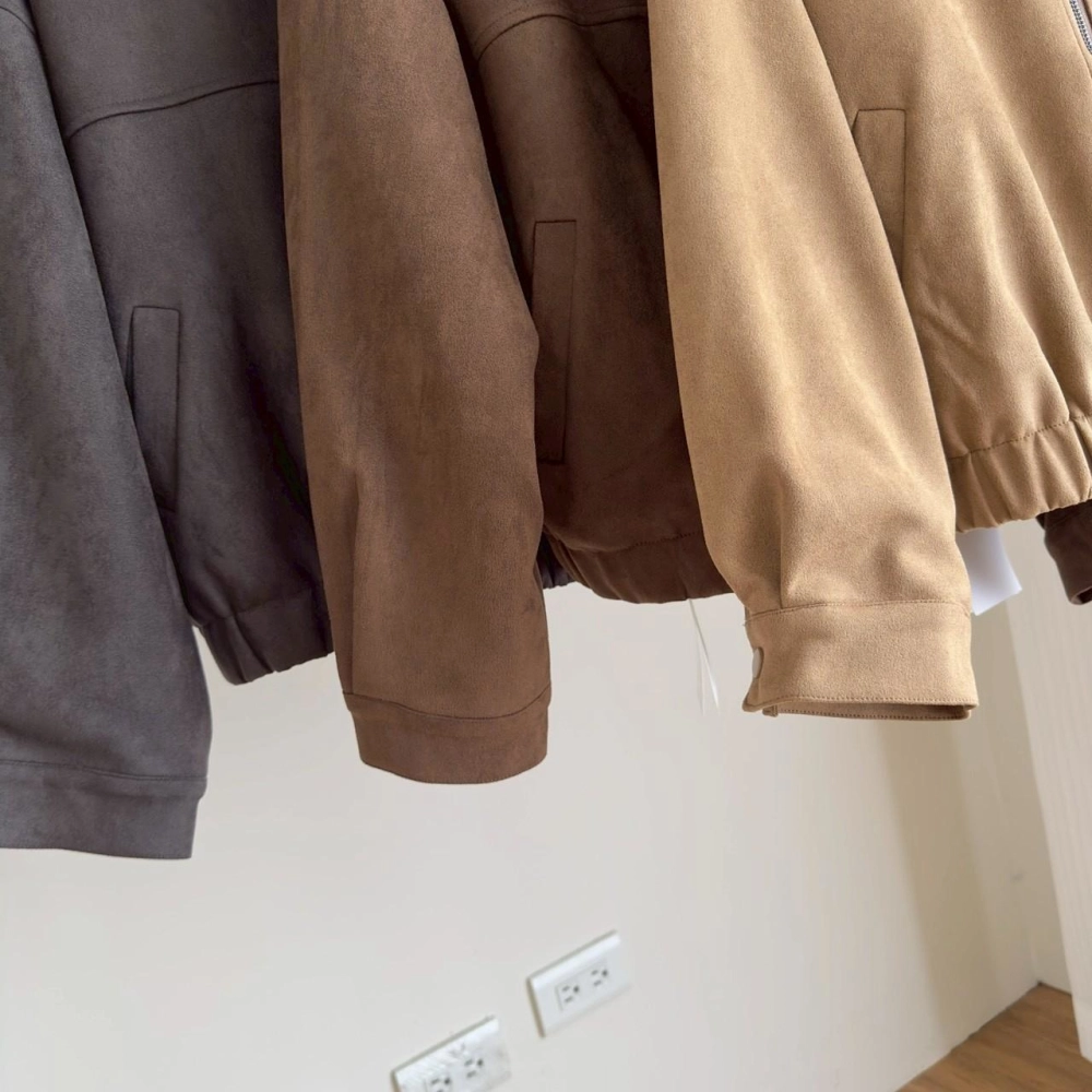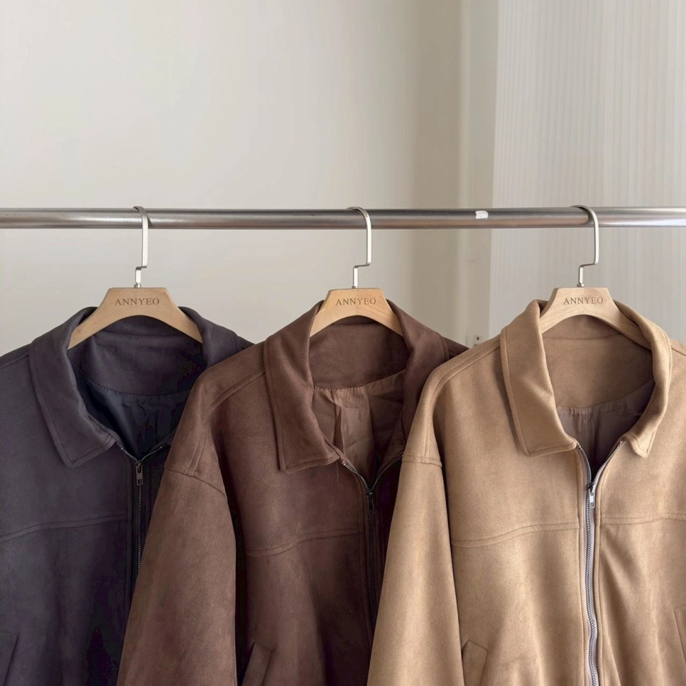 • 翻領麂皮拉鏈外套
