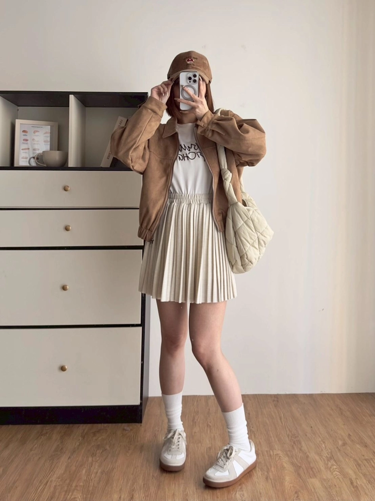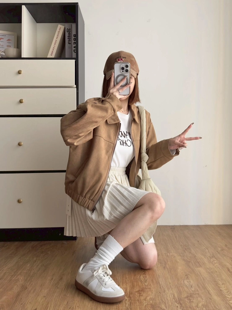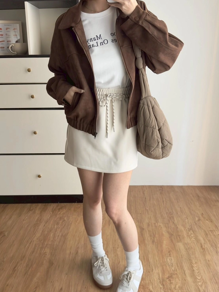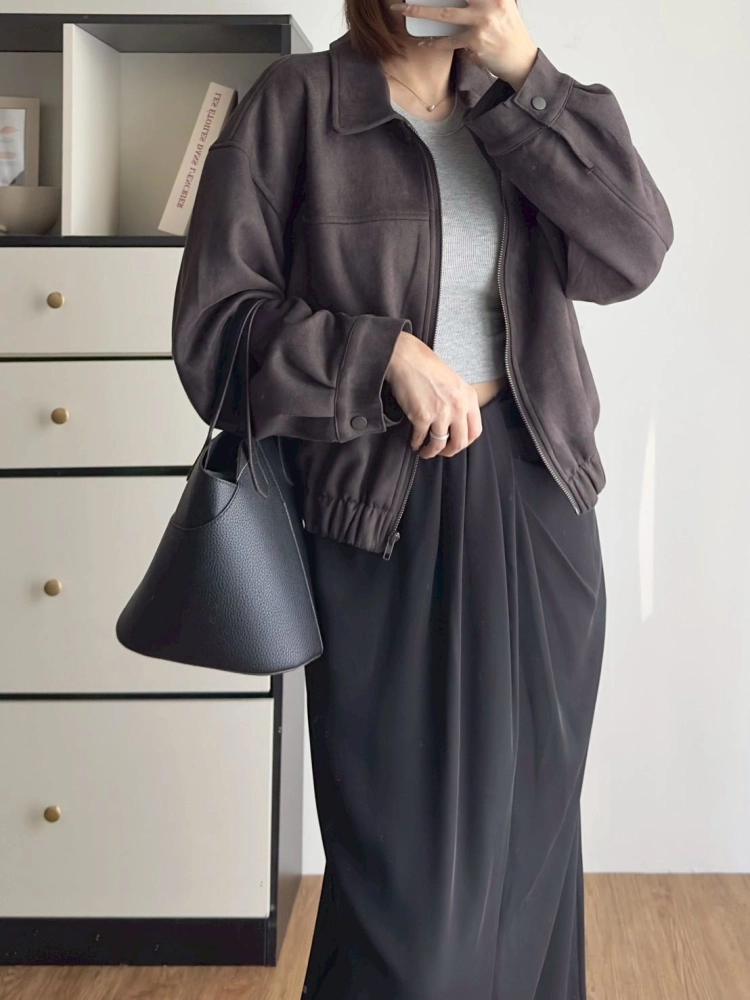 • 翻領麂皮拉鏈外套