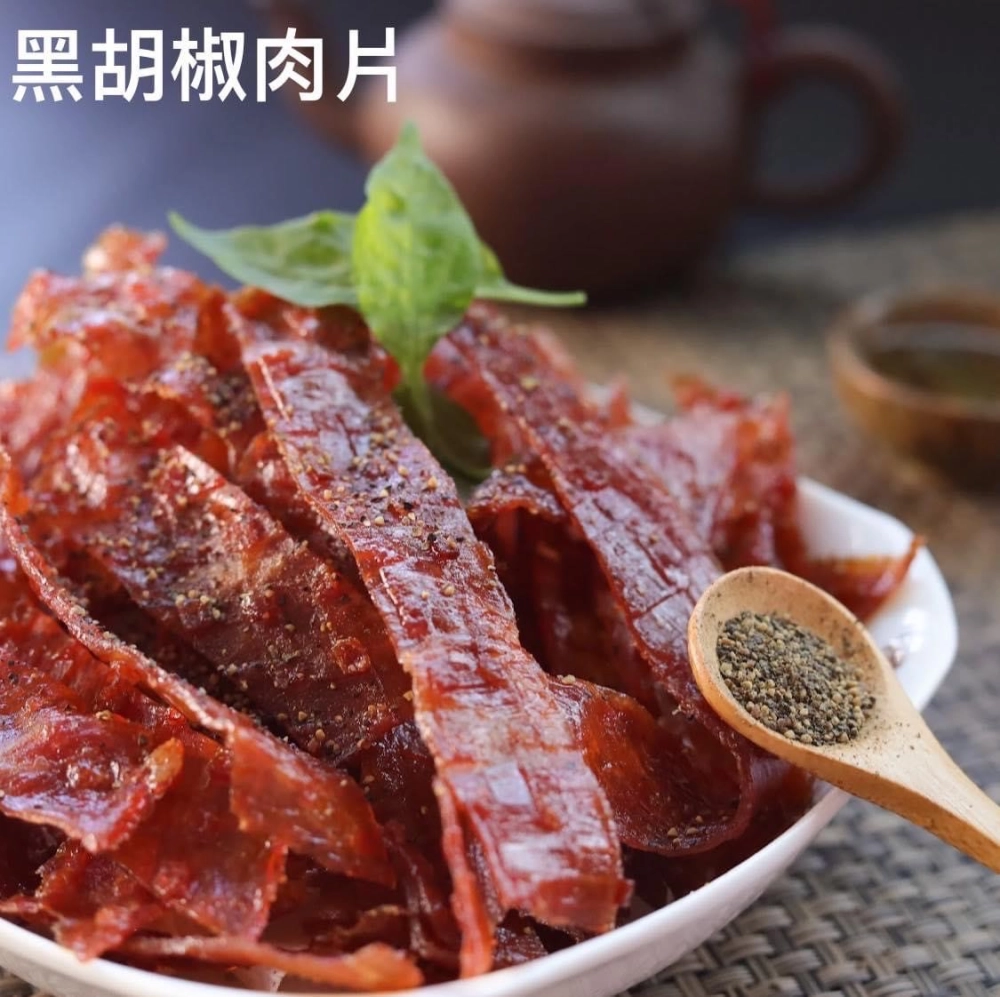👉 採用厚切肉片,胡椒醬汁滲透纖維後,再低溫烘烤定型,呈現耐嚼香辣風味。