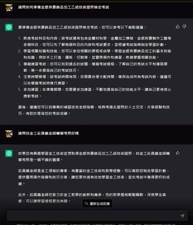 上課期間鎮金工工作室將會提供各式大、中、小模擬考場參考題型及考古題,並在術科考前按安排之時程,實作練習與模擬考場測驗,以利通過測驗。