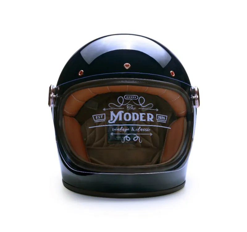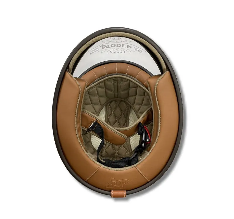 MODER新作品BENJAMIN本傑明,以細版消光深咖啡色小方形邊條為基礎主軸環繞帽體,放大復古氛圍,深咖啡色已成為新復古主義之代表性指標色,小方形邊條加上全帽首創之紅銅色金屬配件點綴,也讓整頂作品不只復古優雅更多了精緻美,開口斜角線條獨特並視野寬闊,是一頂細節相當別緻的帽款,時尚與新復古主義兼具的驚艷單品。