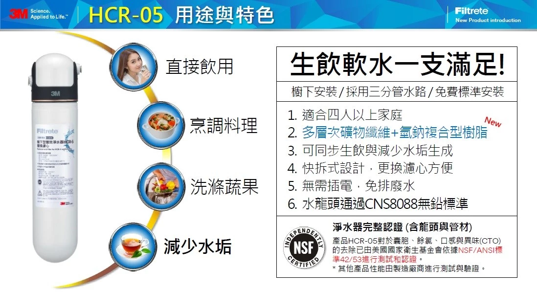 經SGS檢驗,可過濾水中部份有機物(如三鹵甲烷)、部分有害重金屬(如鉛、汞)以及大腸桿菌