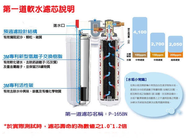 3M專利新型氫離子交換樹脂:有效軟化硬水、去除鈣鎂離子(石灰質)及重金屬離子,並保留25%礦物質。