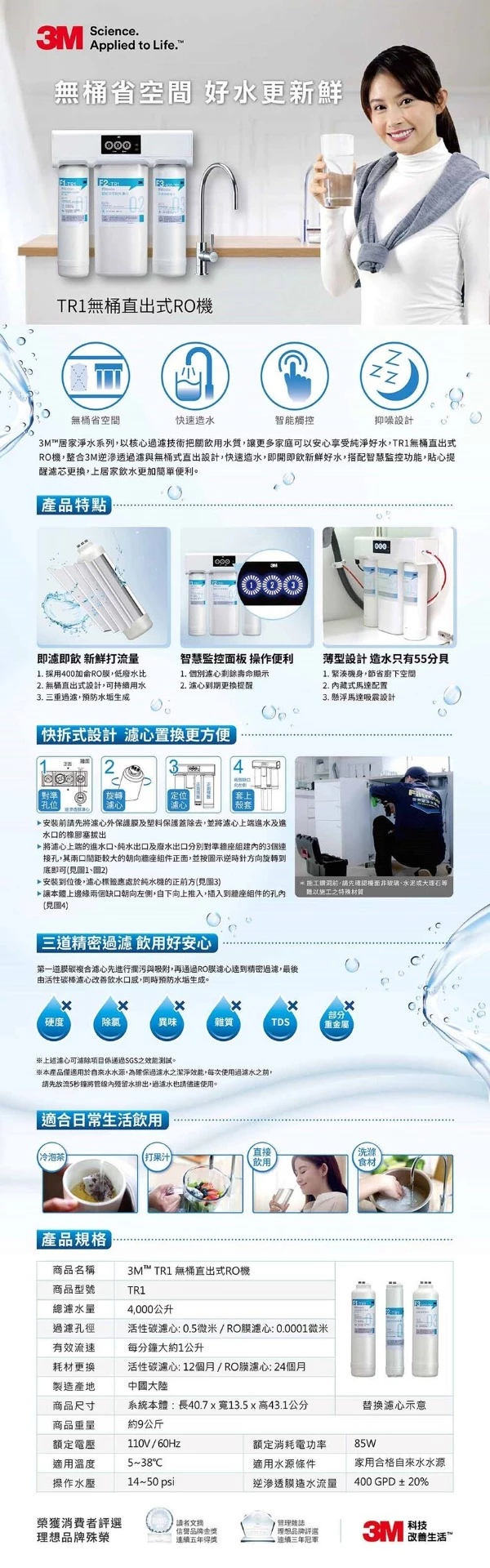 F3逆渗透膜濾心,採用400加侖RO膜,過濾孔徑小至0.0001微米,通過SGS過濾效能測試,品質有保證。