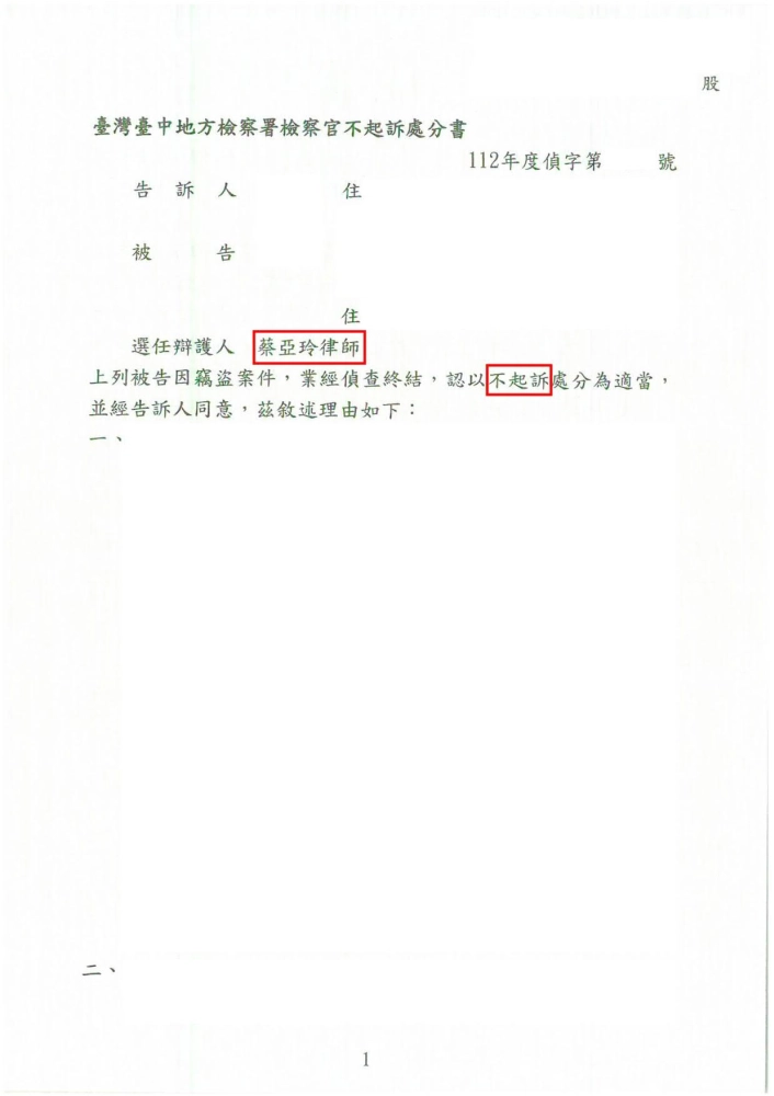 • 竊盜案不起訴處分
