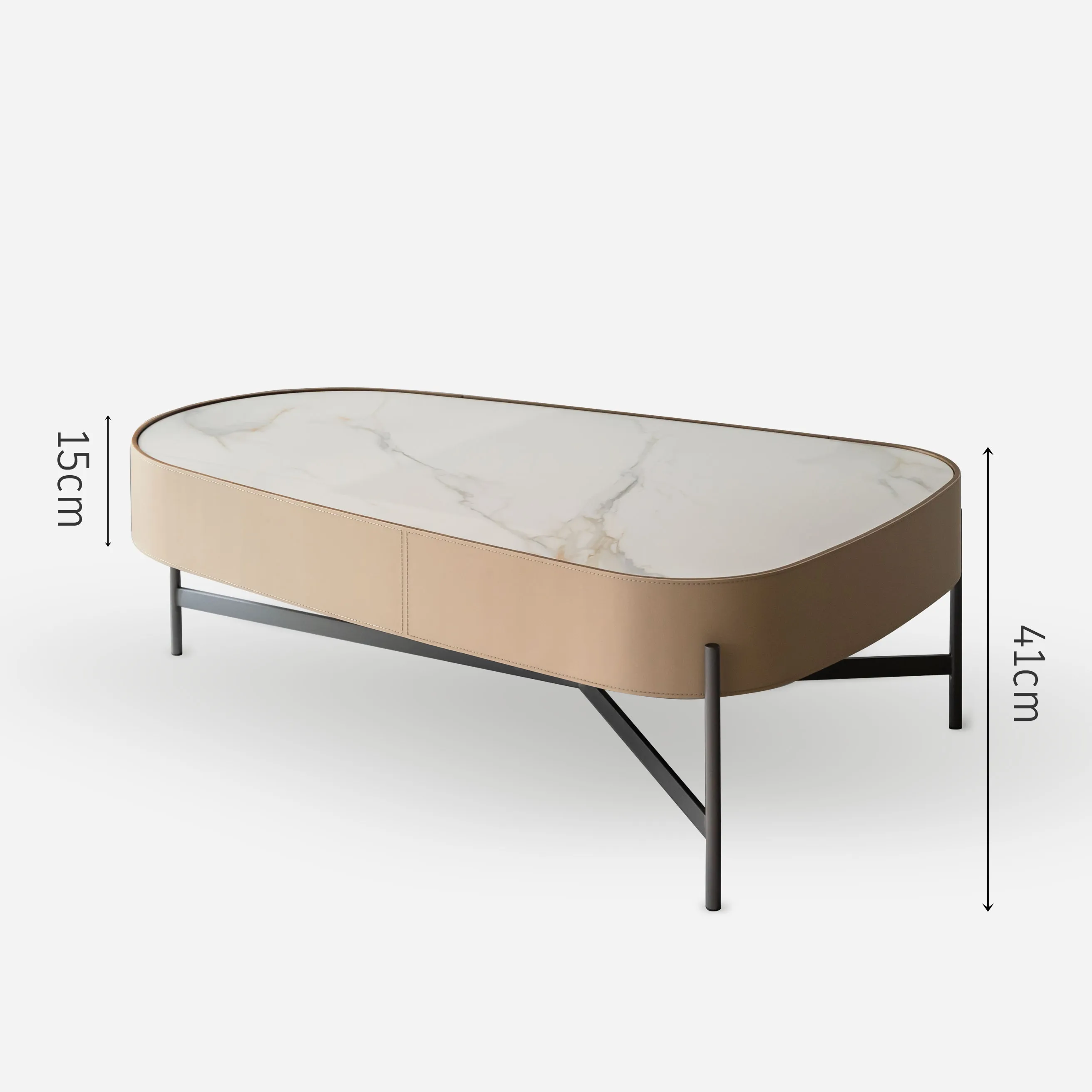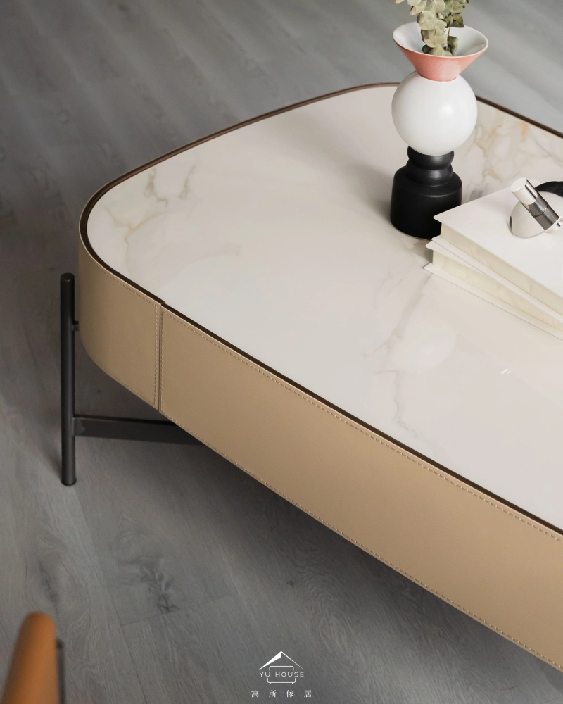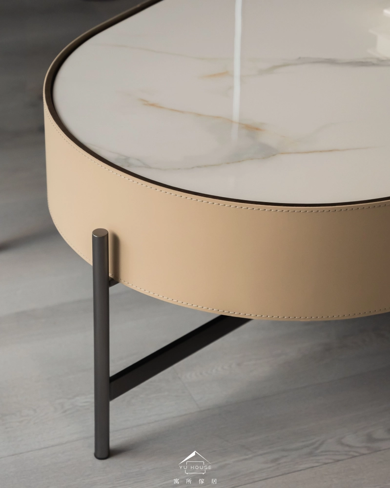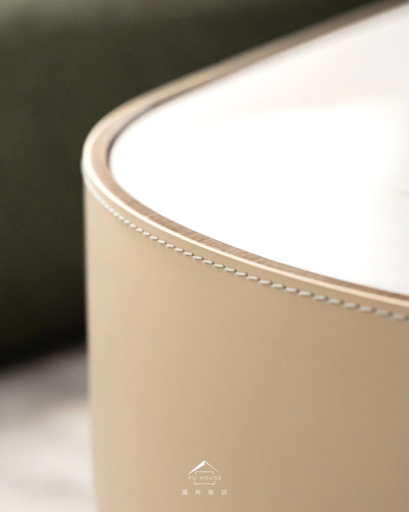 整體材質:馬鞍皮、黑鈦不鏽鋼、岩板