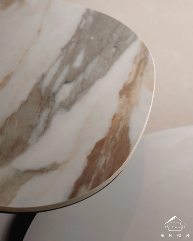 • 搭配圓弧線條的家具:平衡石材的直線感。