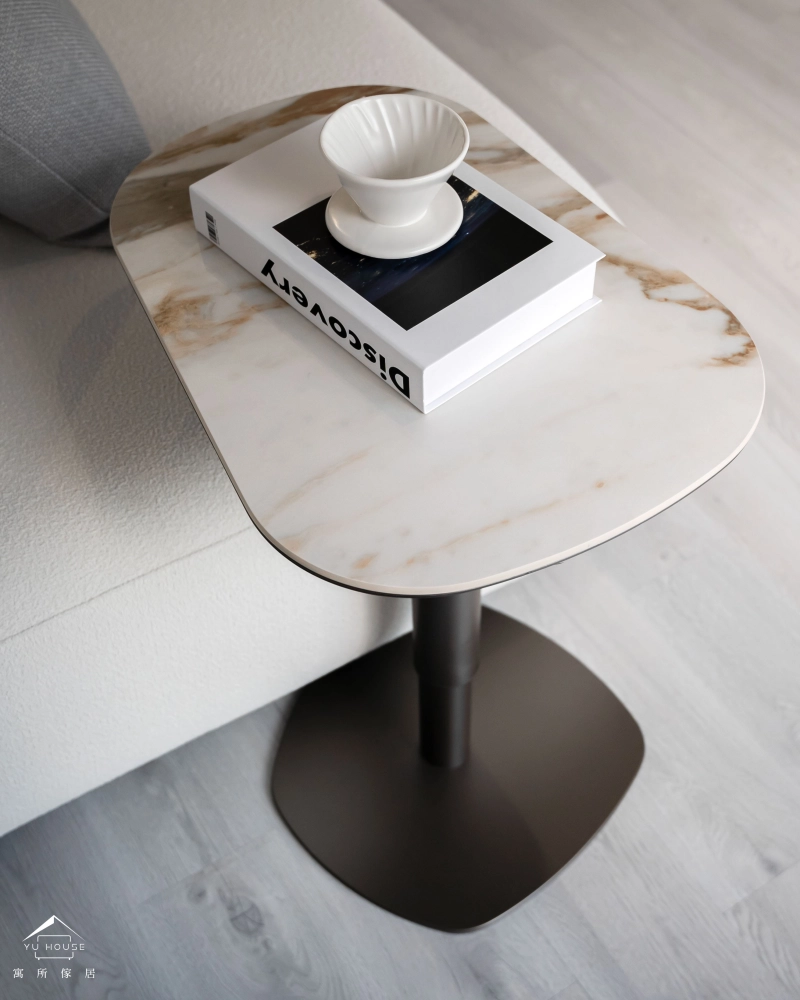 • 【布質或皮革沙發】:柔軟素材中和石材的冷感,空間更平衡。