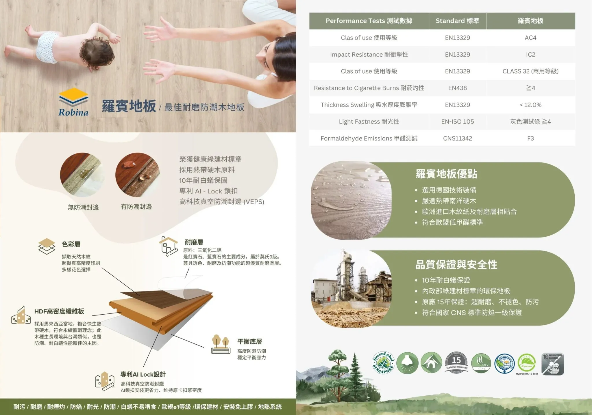 最適台灣氣候的超耐潮地板:使用熱帶快生複合硬木種,符合永續發展理念。
