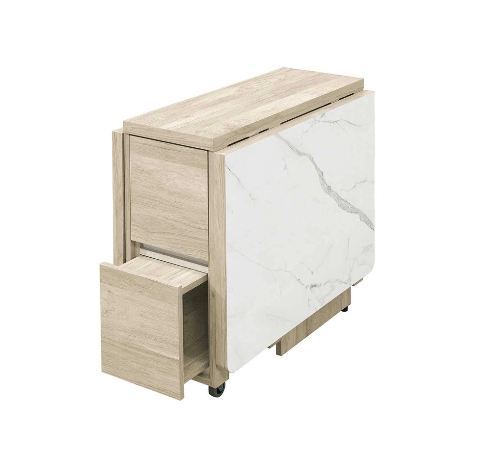 觸感猶如實木,桌面採用仿大理石紋美耐皿材質,