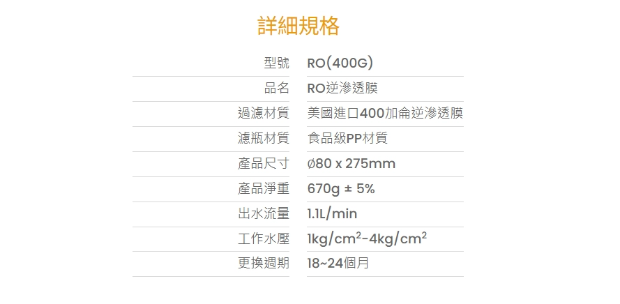 商品【Puretron 普立創 】 DF-400+ RO逆滲透 直輸機專用 第二道濾心-RO逆滲透膜濾心