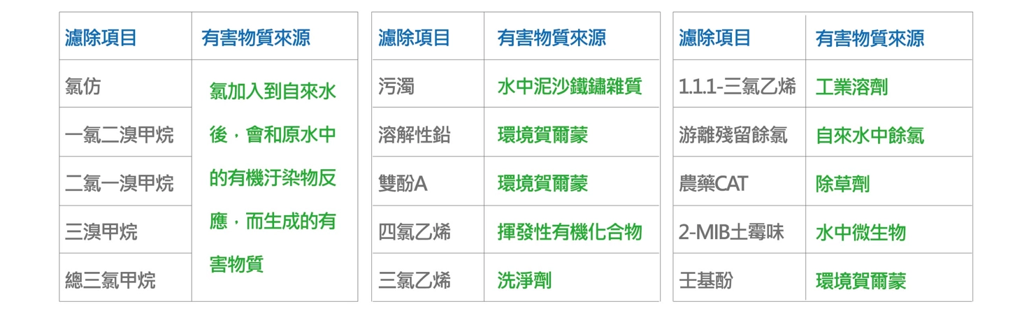 強化第二道活性碳纖心濾材功用,具備過濾十五種化學物質功能(含環境賀爾蒙)