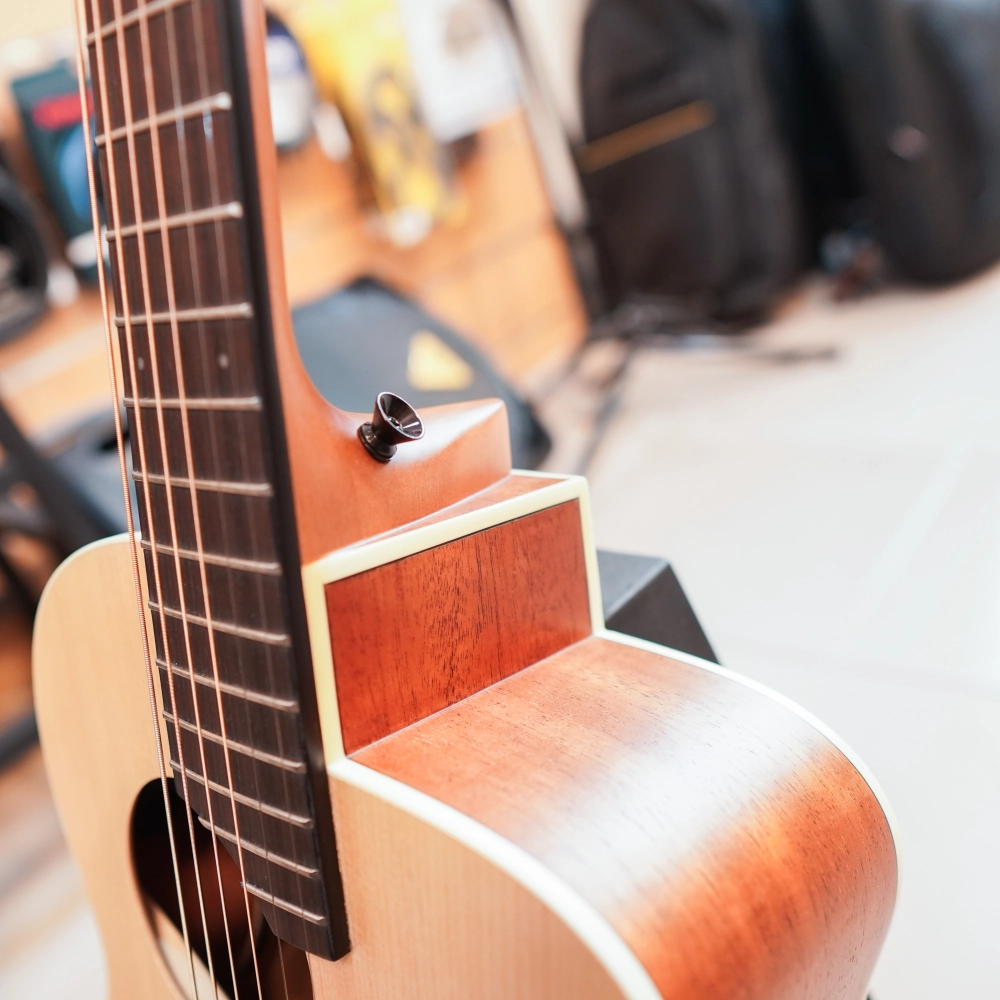 aNueNue 36吋合板旅行吉他,兼具舒適手感與聲音品質。音色穩定,堅硬不易彎曲變形,較不受氣候與濕度變化影響,能適應劣質的環境。