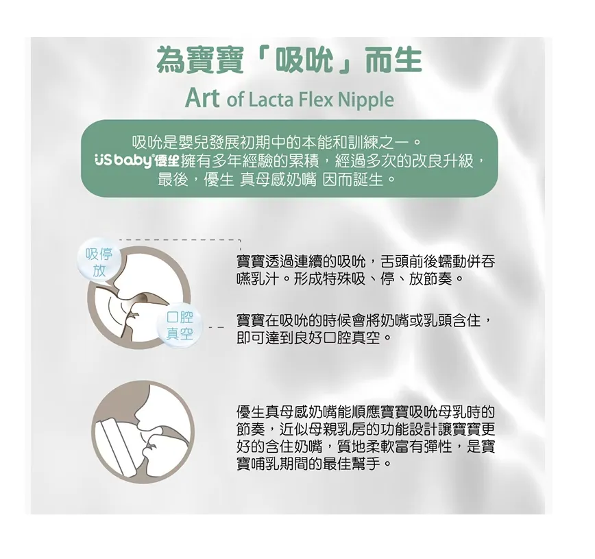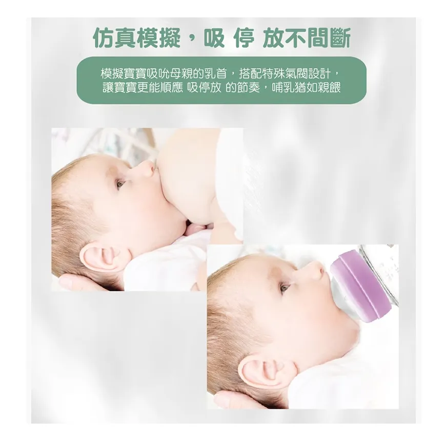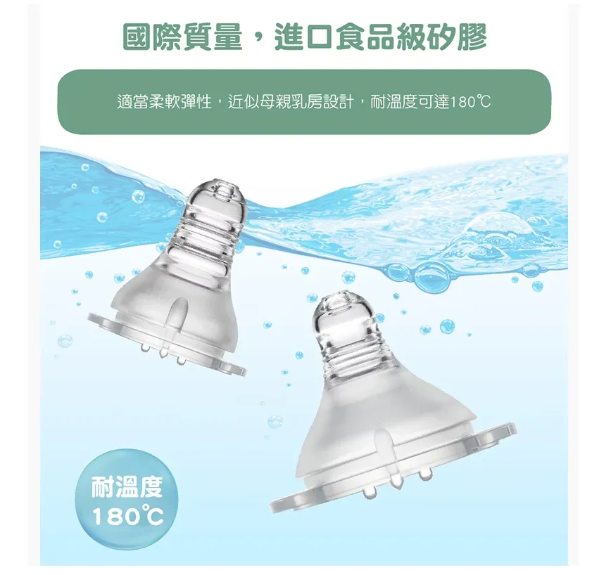 ●仿母親乳房設計 - 適合寶寶舌頭的吸、停、放節奏,適當柔軟彈性延伸。