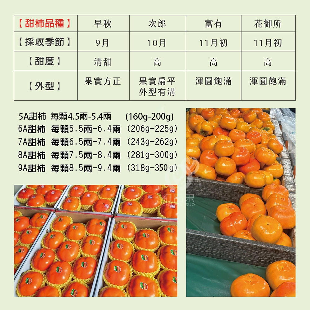 • 1.商品組合/規格:甜柿 5A/6A/7A/8A/9A