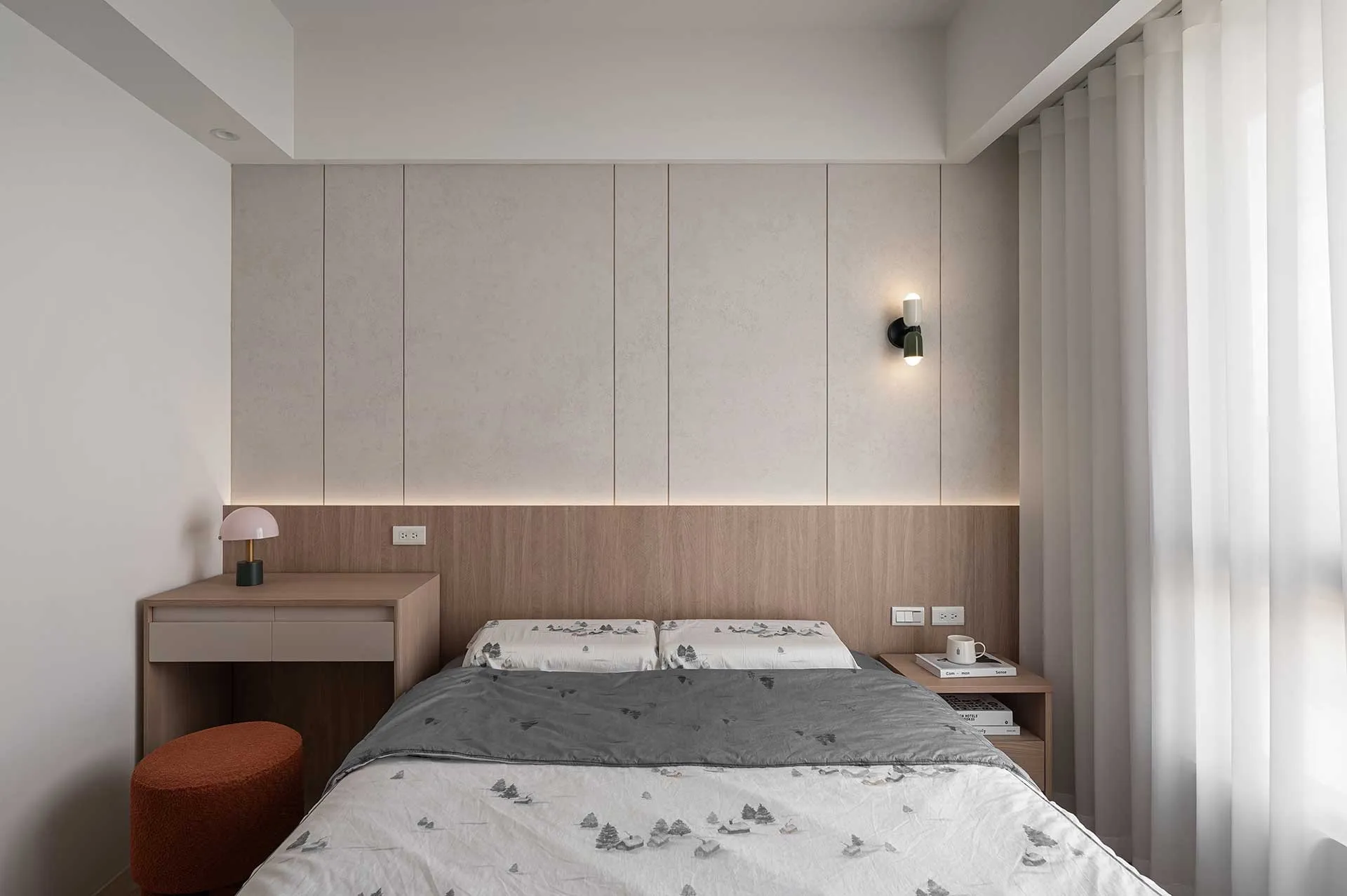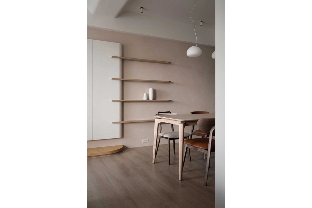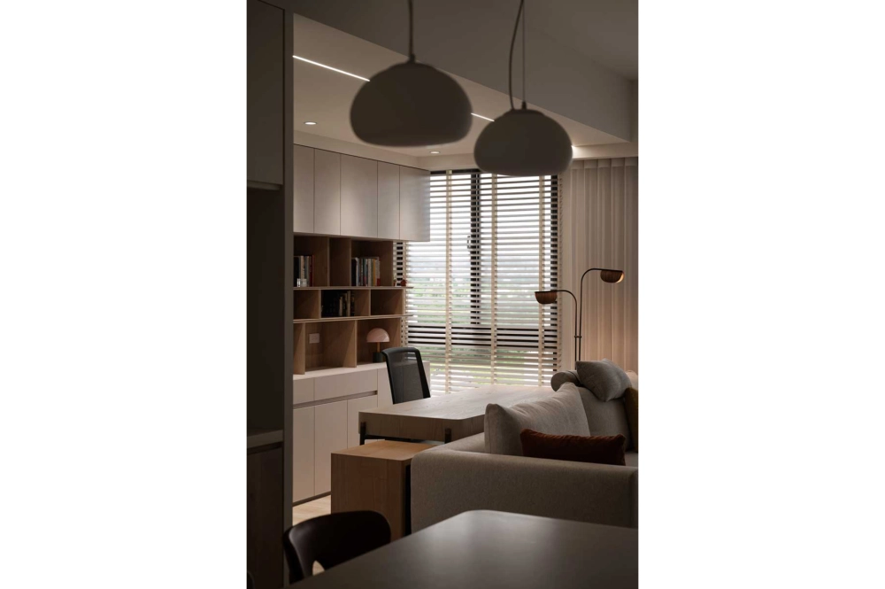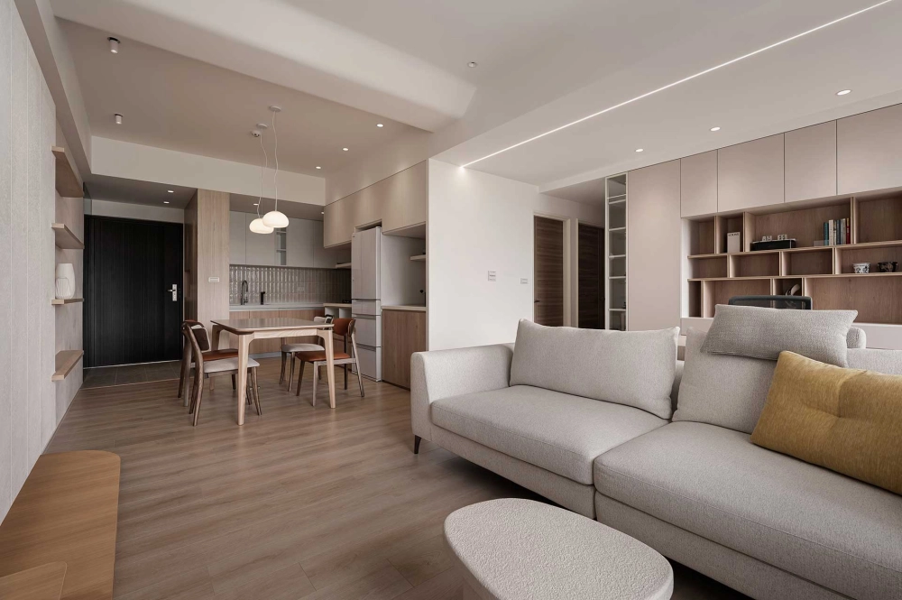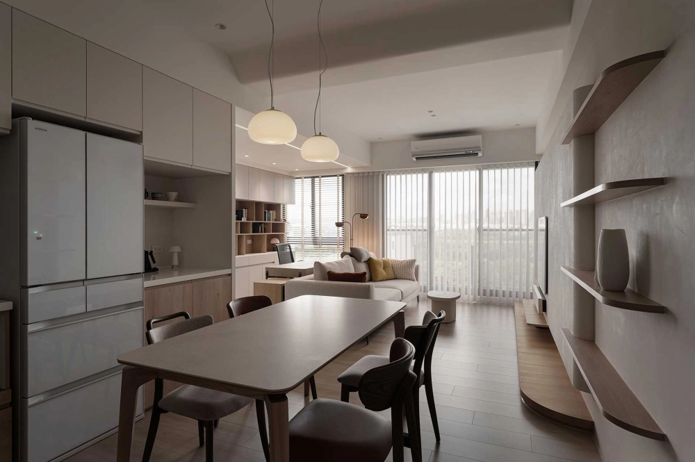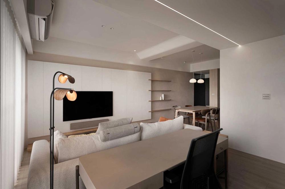 「以自然為底色,以現代為節拍」為主要精神,貫穿該室內設計案在光影的線條裡,空間被重新定義。現代的理性與自然的溫度,在經由調整,化為一個讓日常舒展的港灣。乾淨的造型,柔和的光帶,讓入室的光影配合著節拍呼吸。