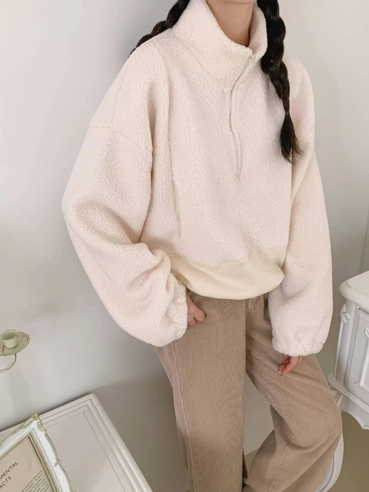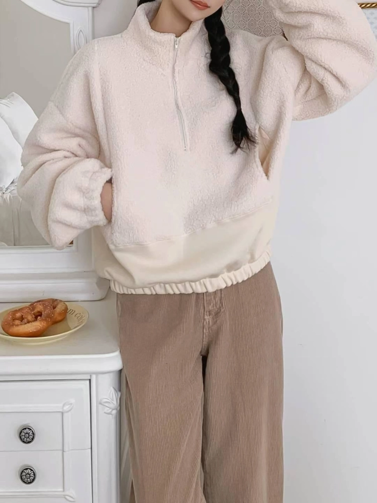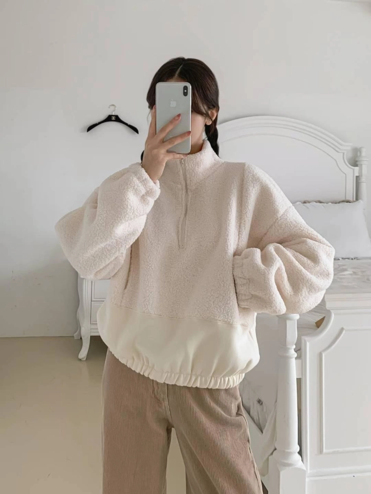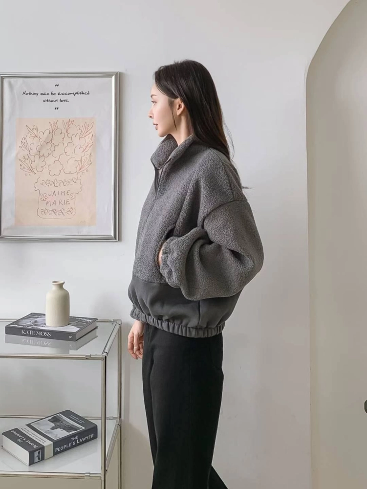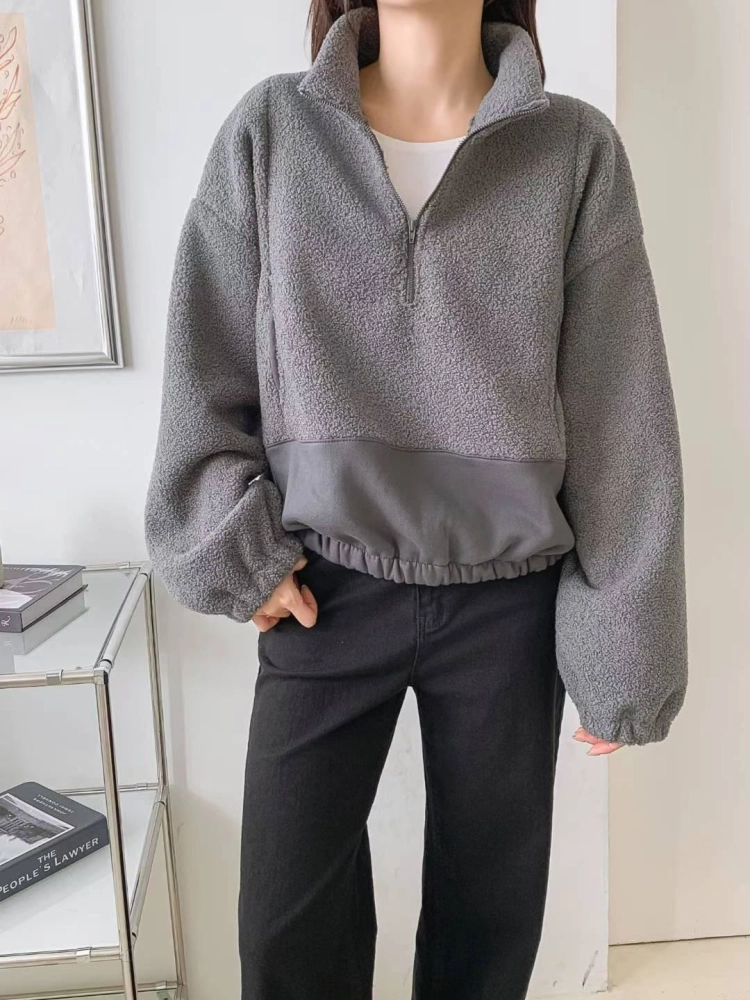 • 正韓QQ毛拉鏈口袋休閒上衣