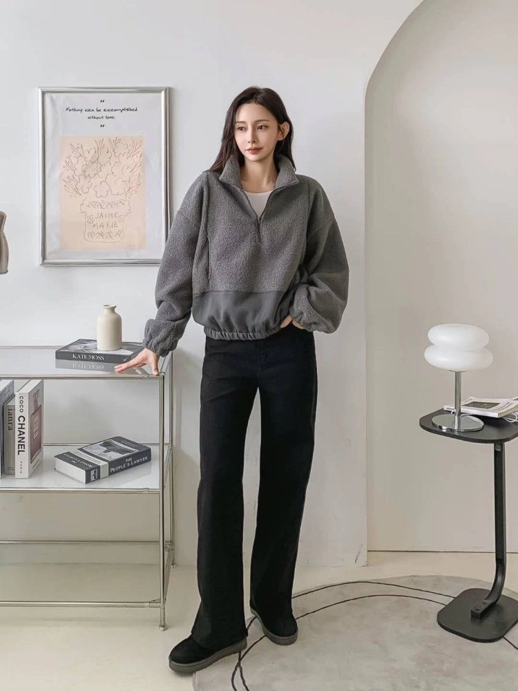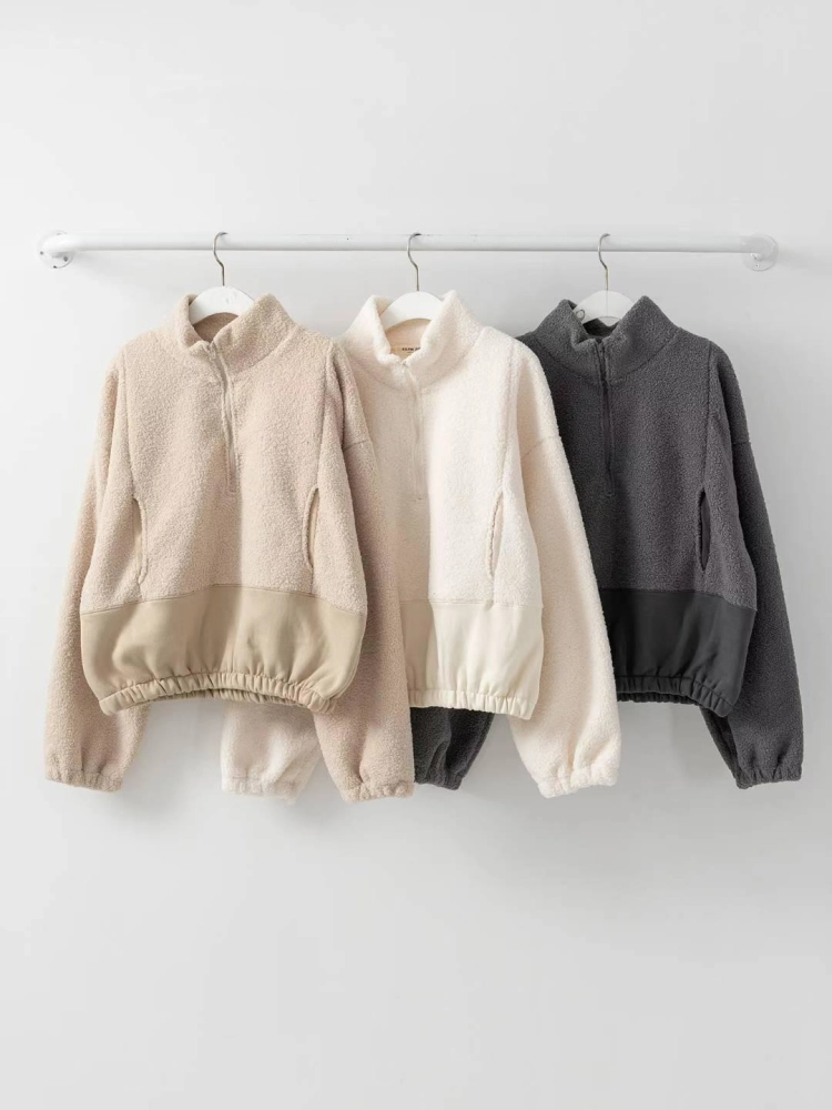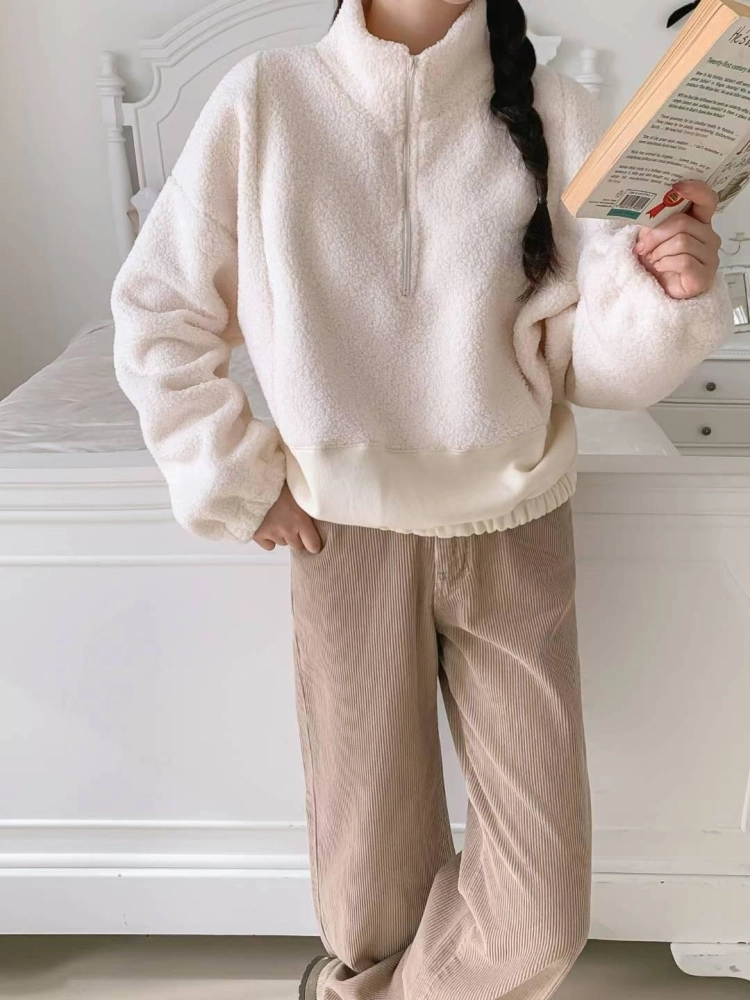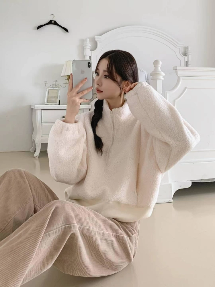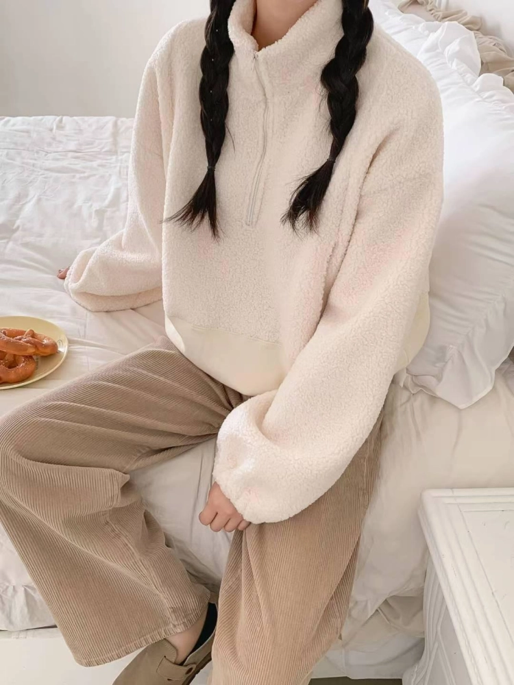• 正韓QQ毛拉鏈口袋休閒上衣