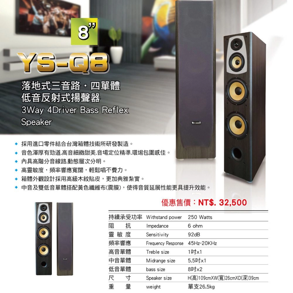 YI SHENG YS-Q8 8吋低音設計 三音路四單體 落地式喇叭