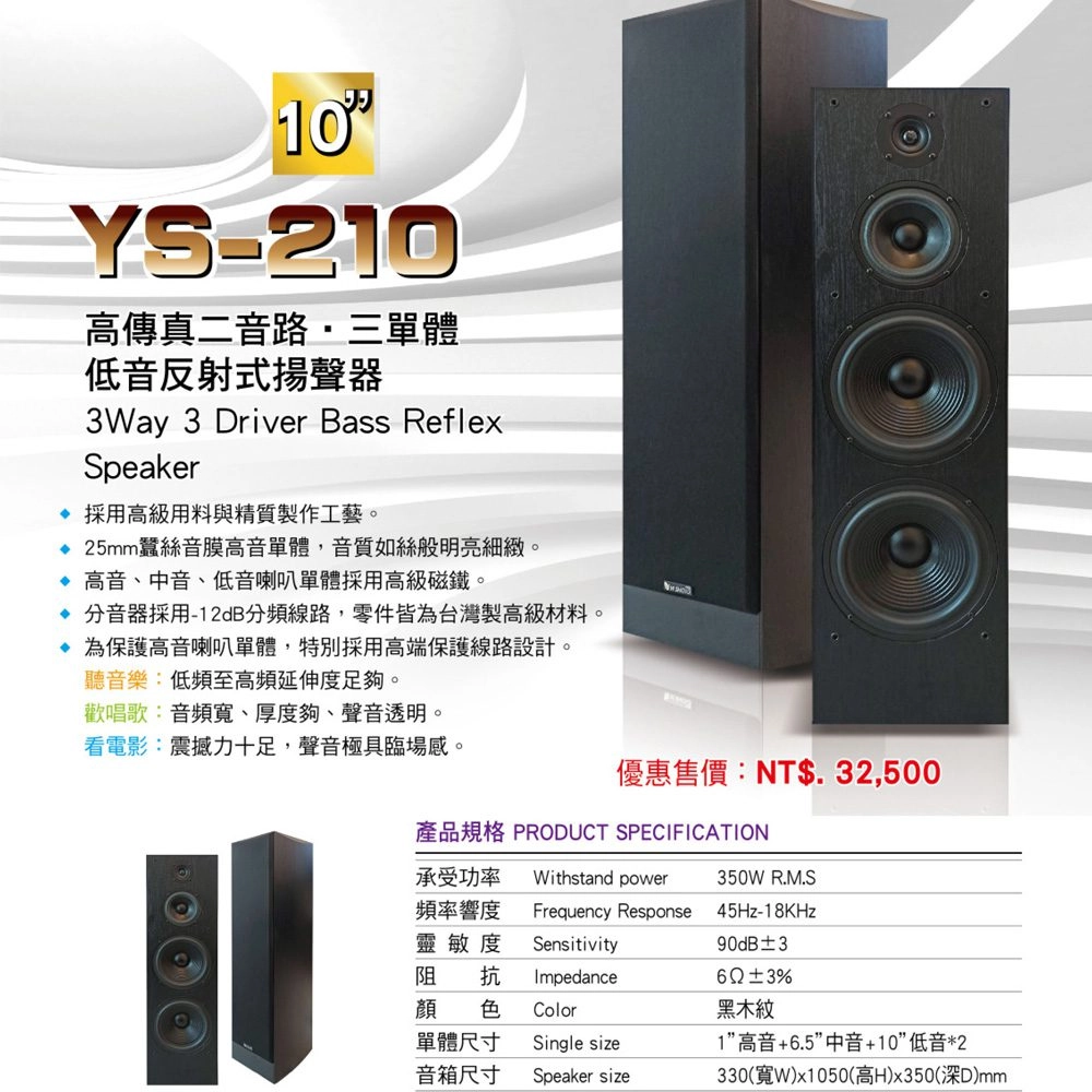 YI SHENG YS-210 10吋低音設計 二音路三單體 落地式喇叭