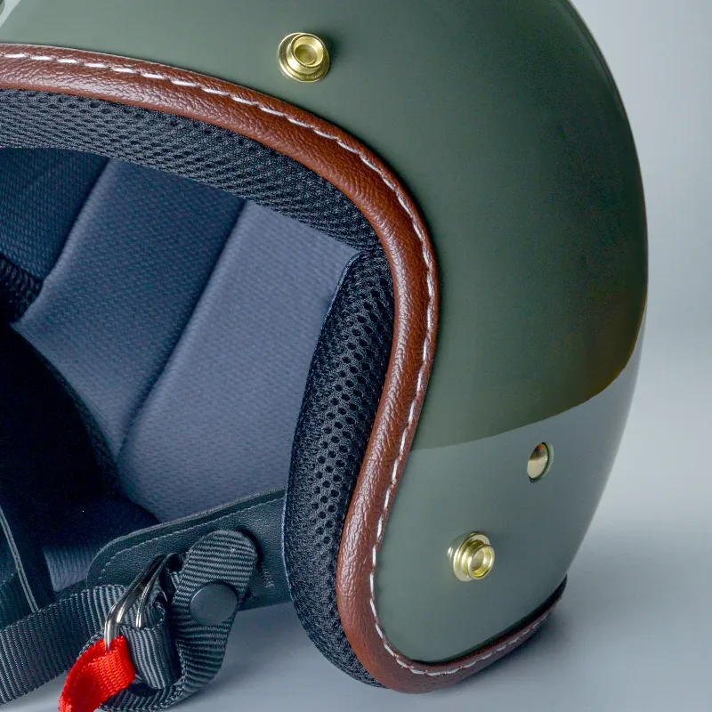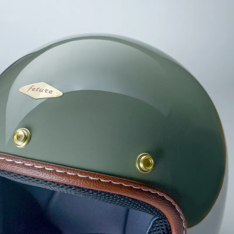DEREK Ⅲ 再度掀起屬於自由靈魂的復古搖滾風潮,延續本系列一貫的 高雅與力量象徵,每一款配色,都能輕鬆展現你穩重而精緻的騎乘品味。新款採用 銅洗黃金色五金配件、後頸真皮飾帶設計,延續 Feture 最具代表性的乳膠皮革縫入帽殼之工法技術,看似簡約的復古外型之下,蘊藏叛逆靈魂與現代細節的平衡。