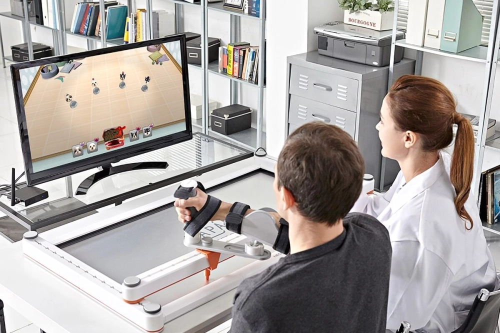 * 「透過遊戲化的訓練,針對肩部與肘部動作進行個人化訓練,難度會隨患者進步自動調整。」