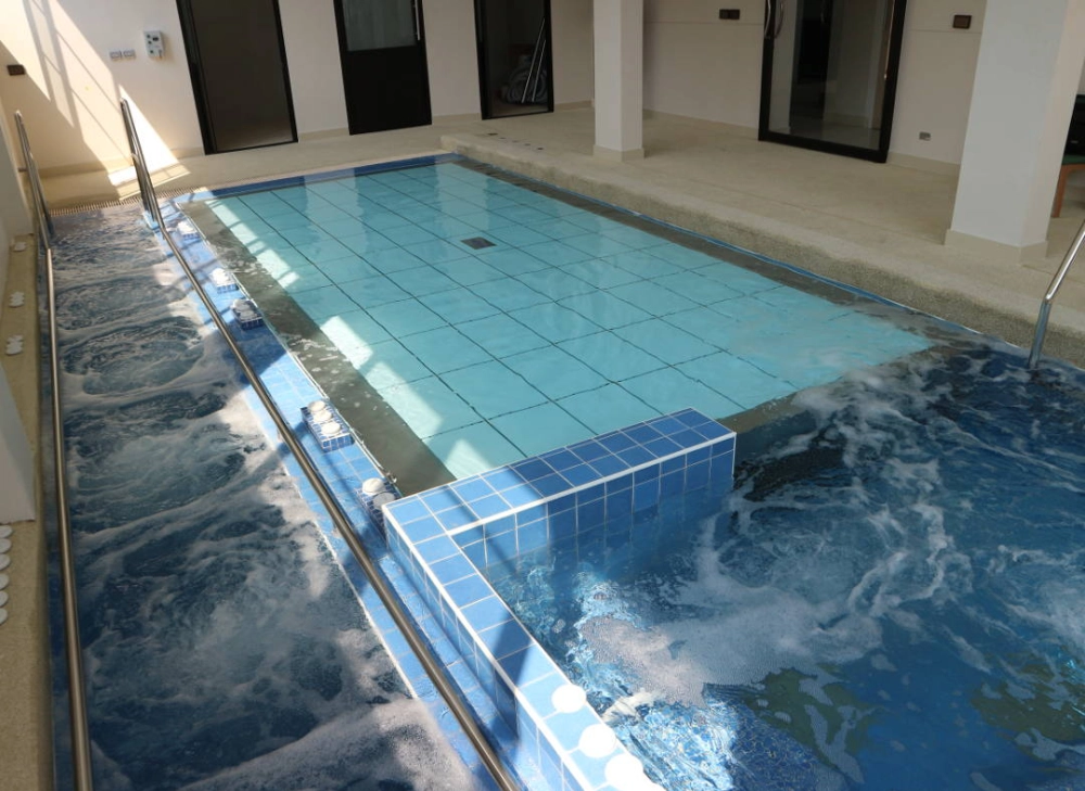* 提供不同水深的治療環境,能輔助 步態訓練、平衡訓練、循環功能改善、肌肉放鬆 等臨床需求。