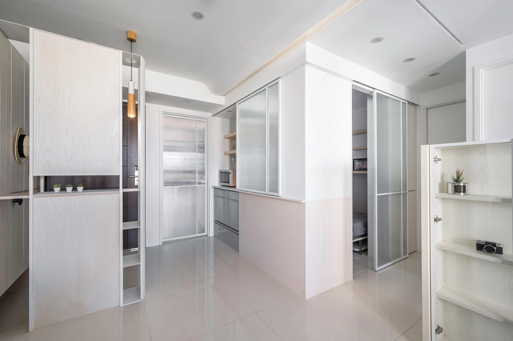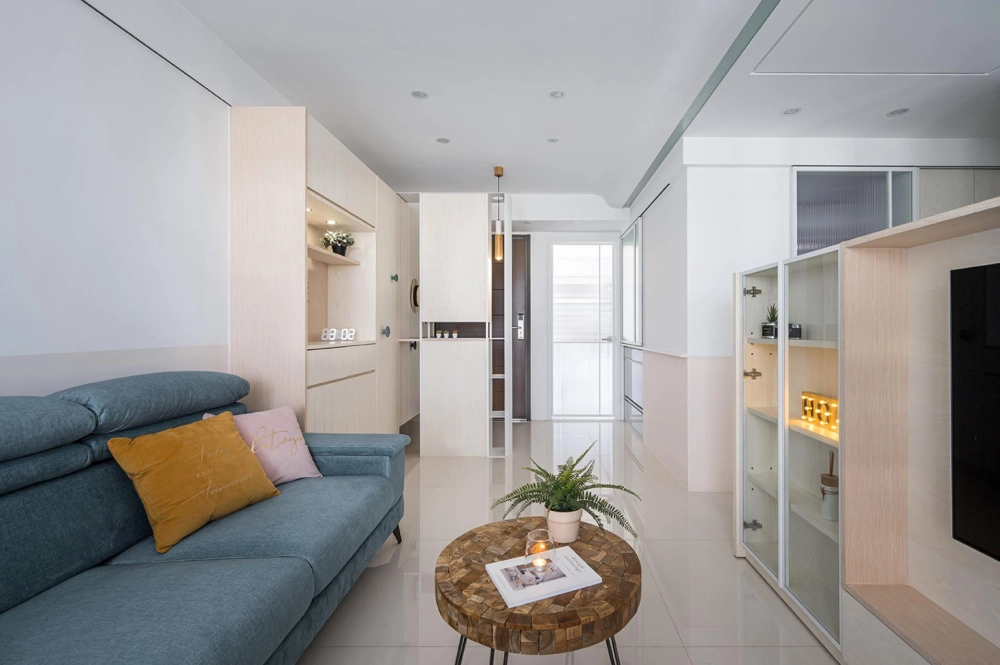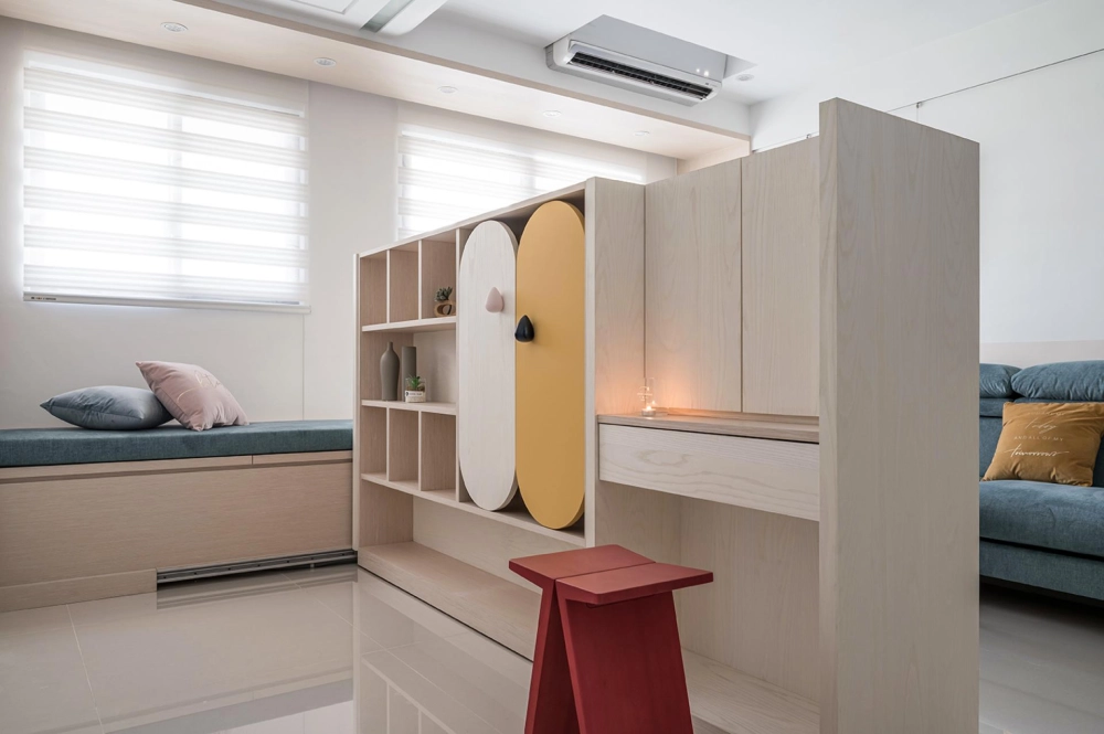 The homeowners are a DINK couple, accompanied by their two furkids. Drawing from experience in compact living design, the designer set out to a home that is flexible, playful, and full of character. Emphasizing the clients’ fondness for cleverly designed hardware and adaptable functional layouts, the space incorporates colorful yet harmonious design surprises throughout. The result is a compact home that can be adjusted to suit different moods, seamlessly balancing storage, interaction, and versatility to accommodate both everyday living and entertaining needs.
