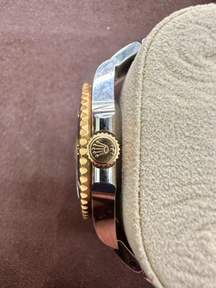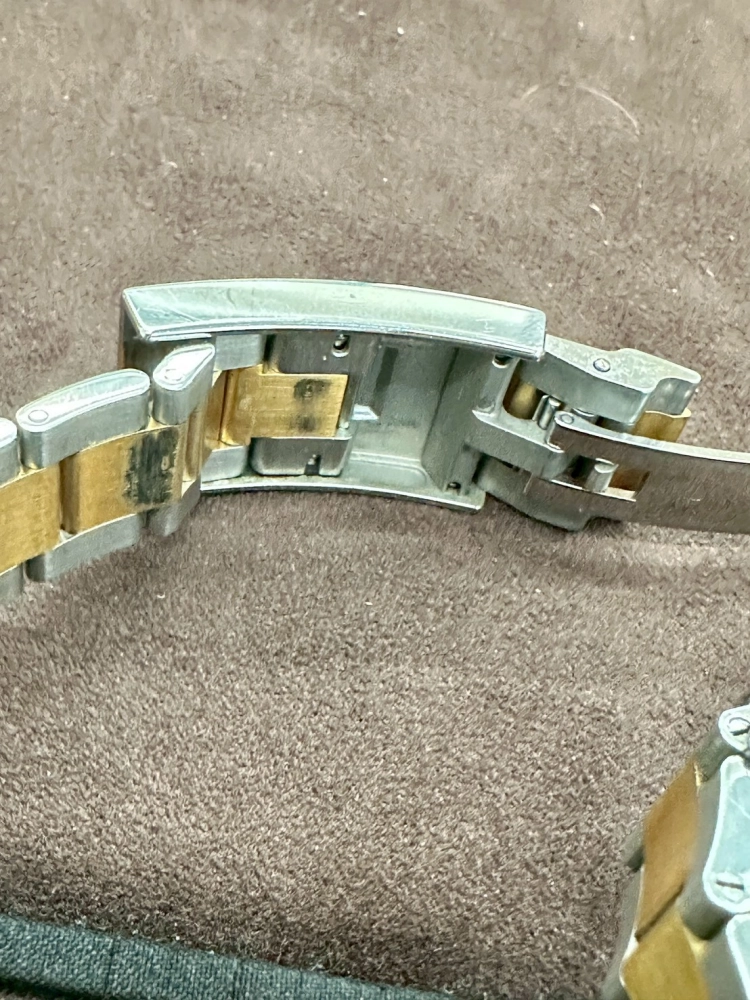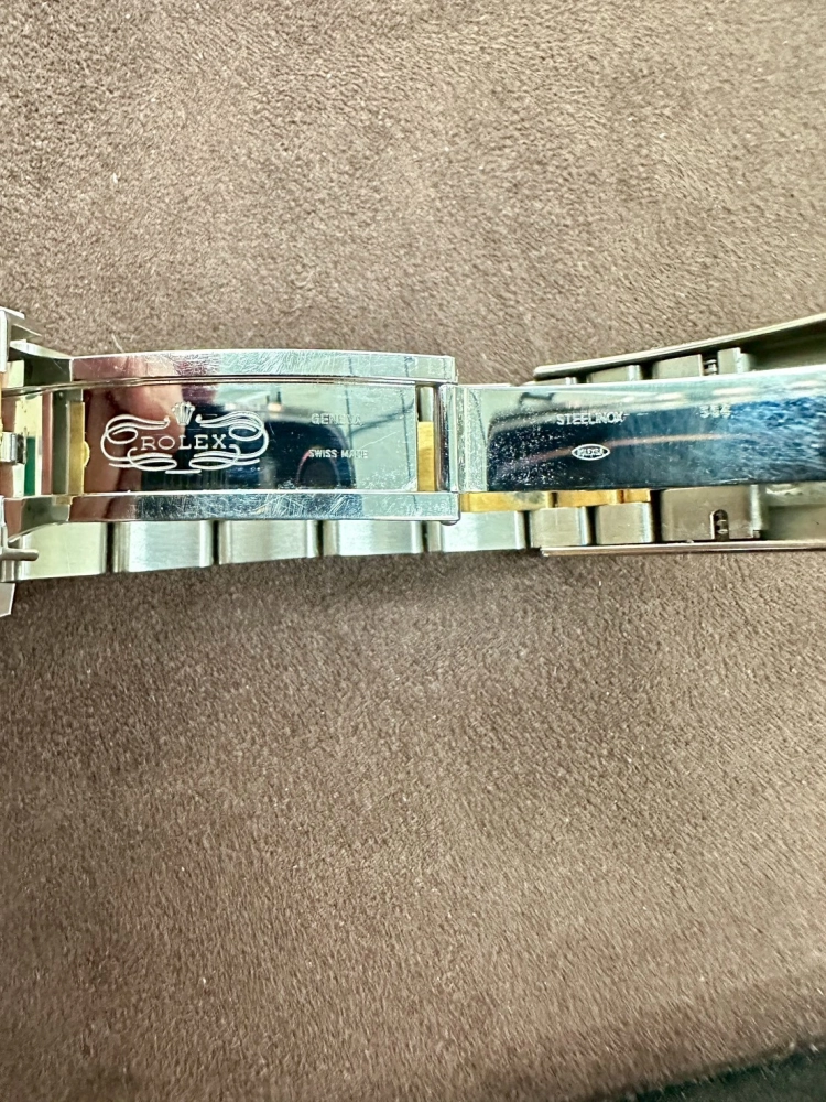 材質: 904L精鋼+18K黃金材質錶殼、錶帶、快調式摺疊扣 / 黑色放