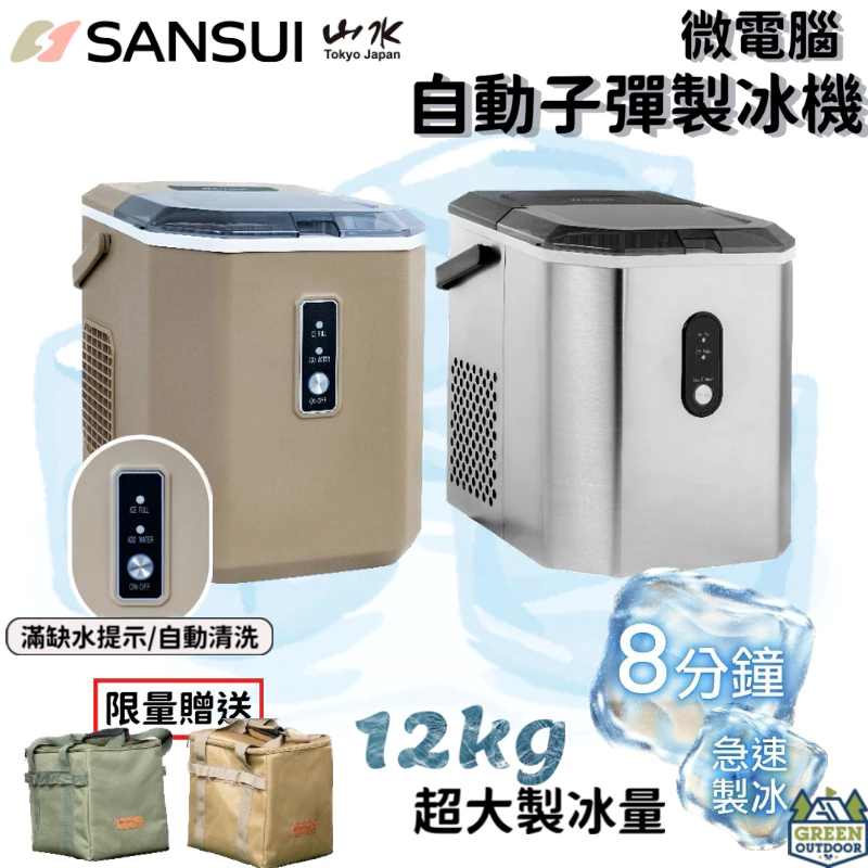 SANSUI 山水 微電腦自動製冰機【綠色工場】限量贈送收納袋 家用製冰機 露營冰塊 夏日必備 8分鐘快速製冰