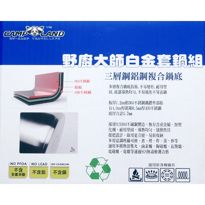 🔥Campland RV-ST920野廚大師白金套鍋組,有同價位少有的三明治結構鍋體結構,食安級304不銹鋼鍋膽,堅固耐用,導熱均勻