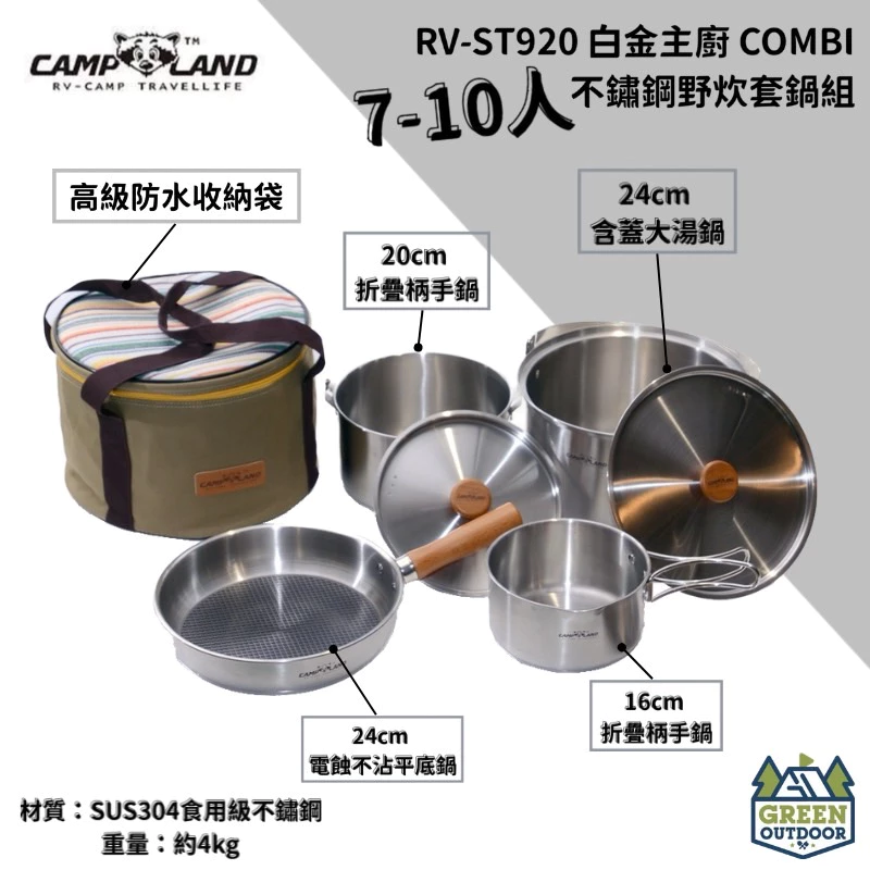 【綠色工場】CAMP LAND RV-ST920 白金主廚COMBI 7-10人不鏽鋼野炊套鍋組 收納鍋 鍋具 露營鍋'