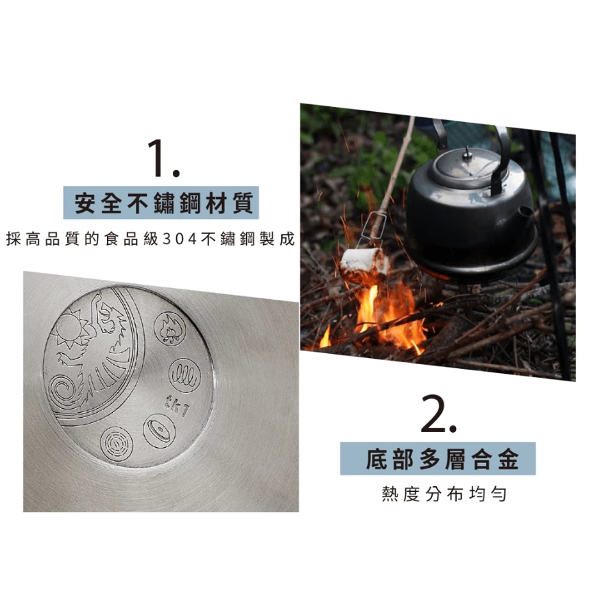 🔹適用於瓦斯爐、電磁爐、電晶爐或是炭火,戶外野營、居家休閒都方便使用