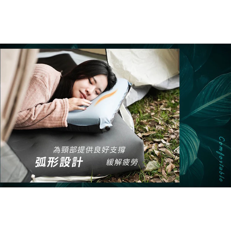 【綠色工場】Outdoorbase 3D舒壓自動充氣枕頭 記憶棉枕 露營枕頭 自動充氣枕 附收納袋