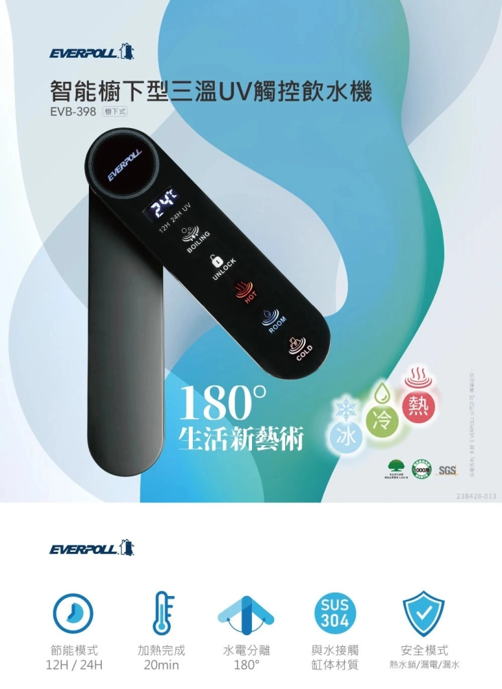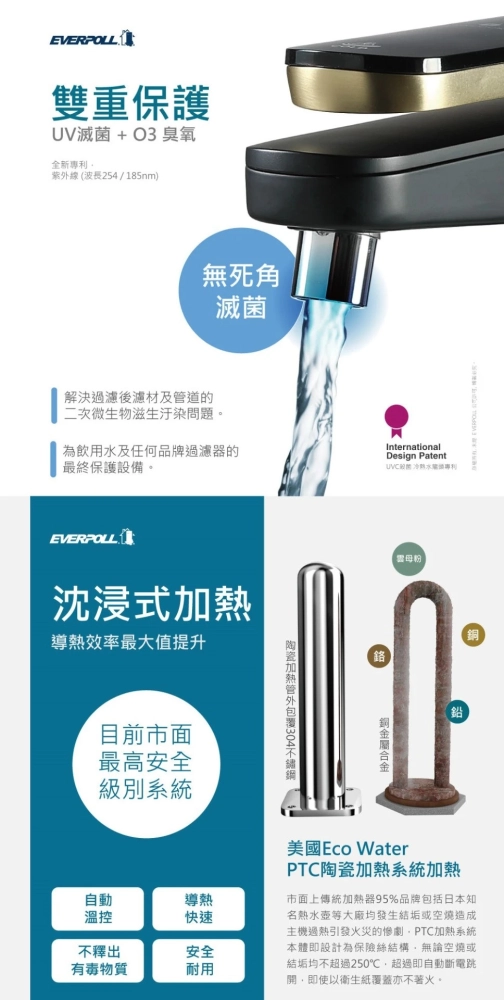 首款冰/冷/熱飲水功能+UV滅菌模組,喝得更安心