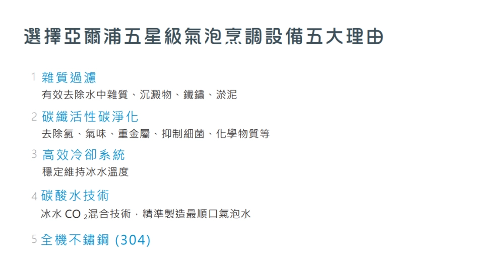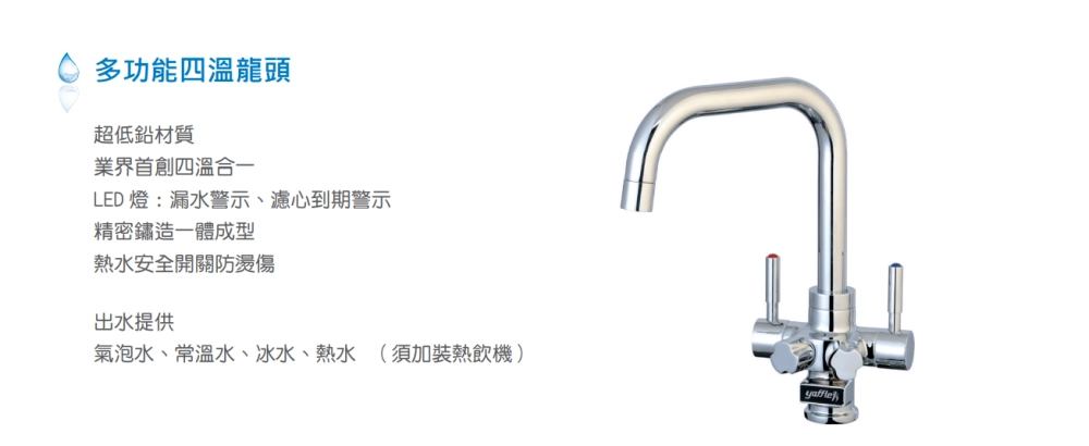 產品設備:五星級氣泡烹調設備主機、機械式四溫龍頭、