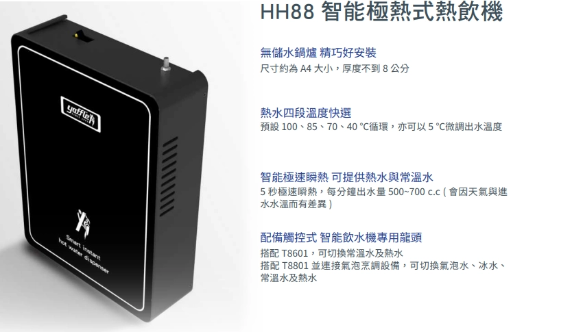 熱水四段溫度快選|預設100、85、70、40℃循環,亦可以5℃微調出水溫度