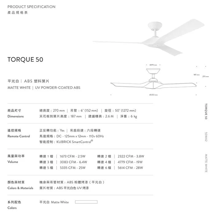 附六速遙控器 | 自然風功能 | 智能控制 KUBRICK SmartControl® App