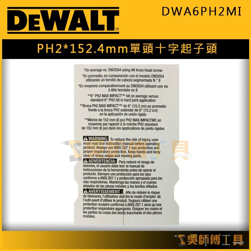 【DWA6PH2MI】152.4mm PH2單頭十字起子頭/高扭力起子頭(單支)