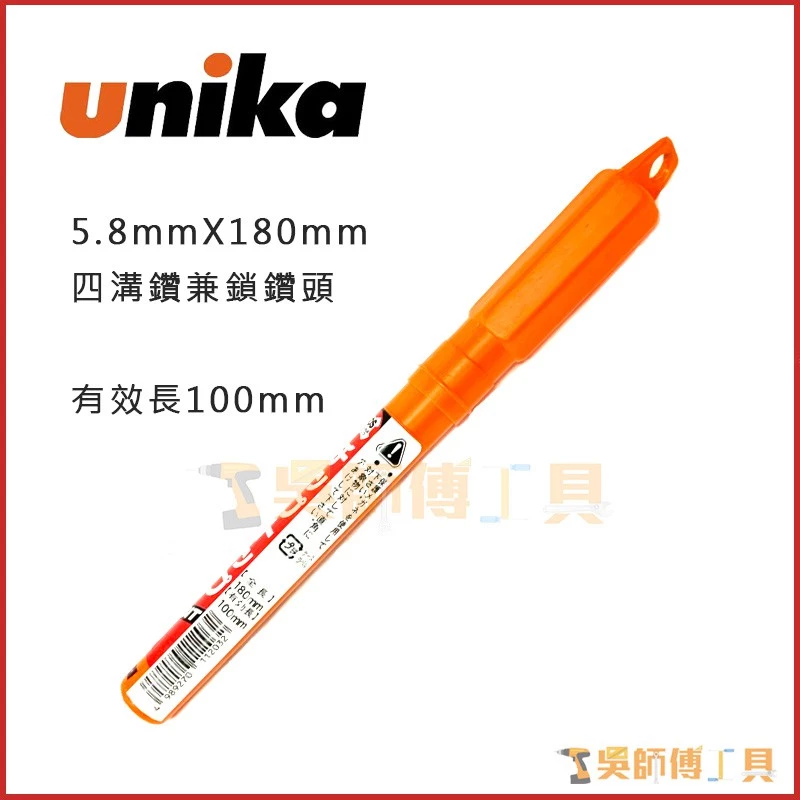 unika 5.8mmX180mm 四溝鑽兼鎖鑽頭
