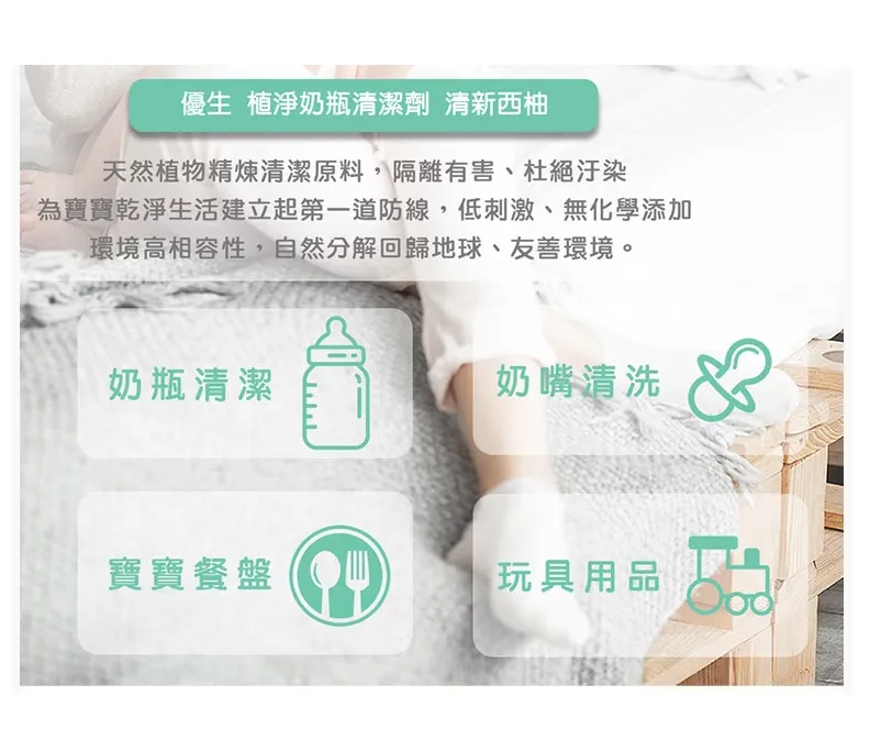 ●一瓶抵多瓶:溫和洗淨奶瓶、餐具、玩具、奶嘴污垢,徹底分解奶垢、油汙,易洗淨不殘留。