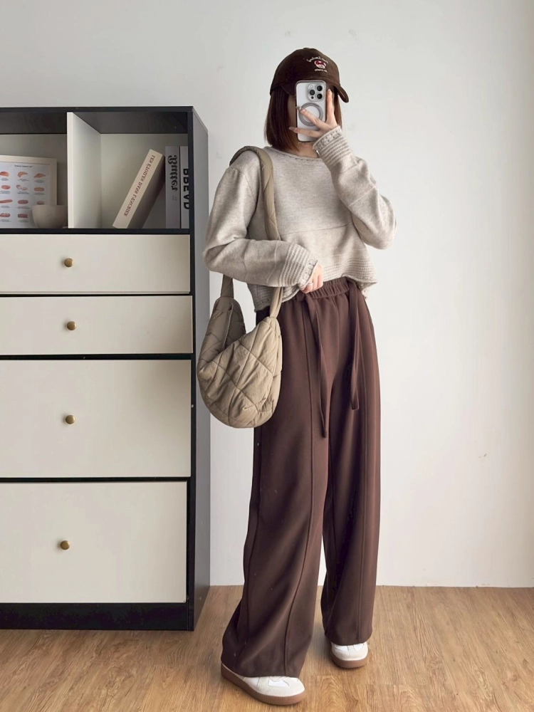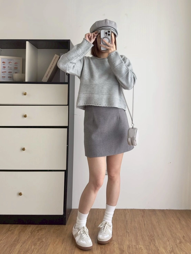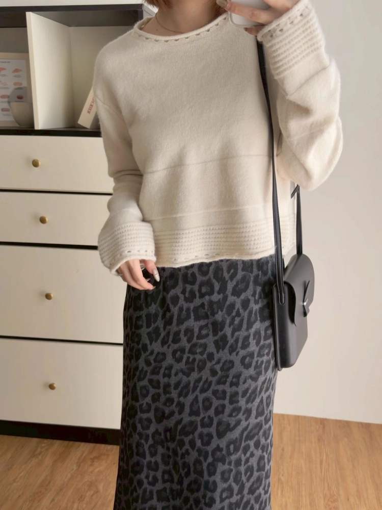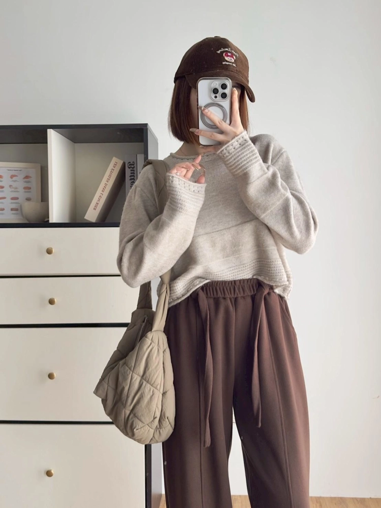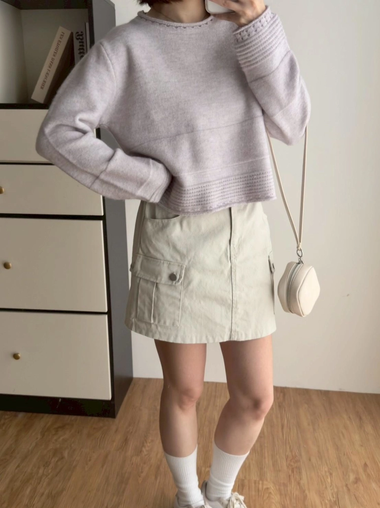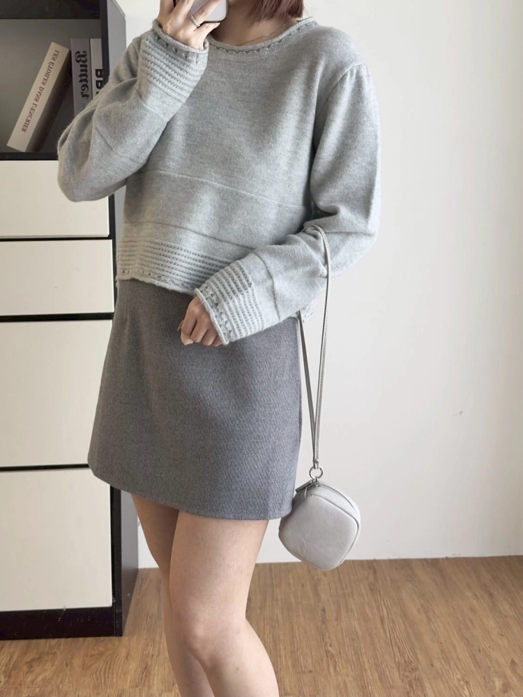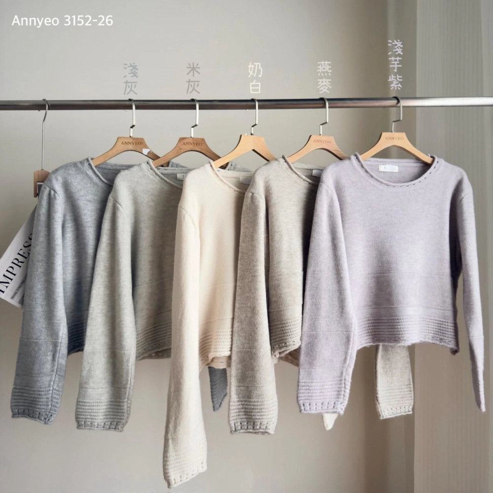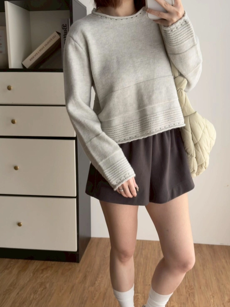• 圓領下坑條毛衣