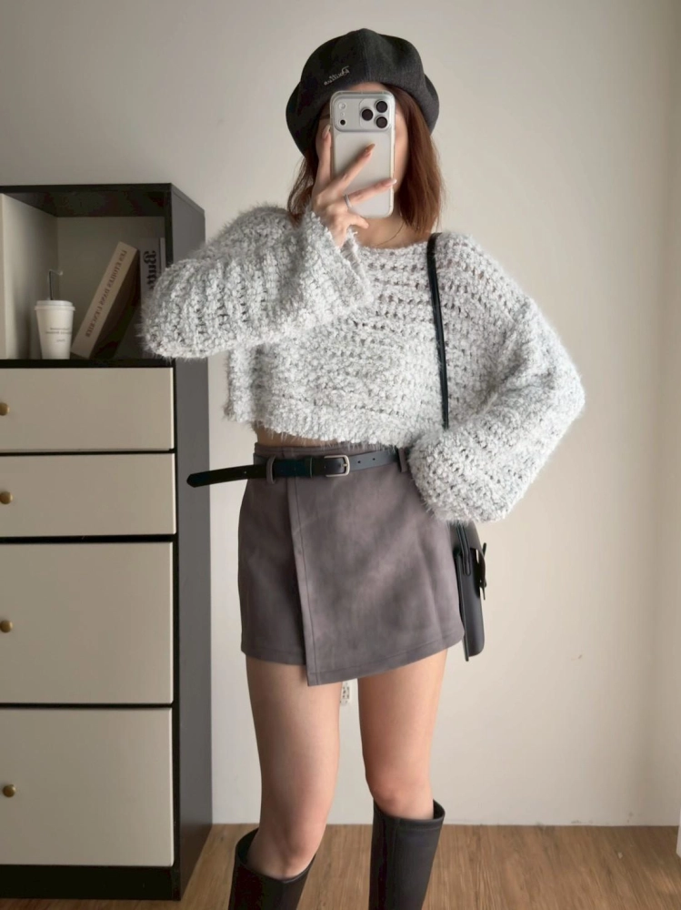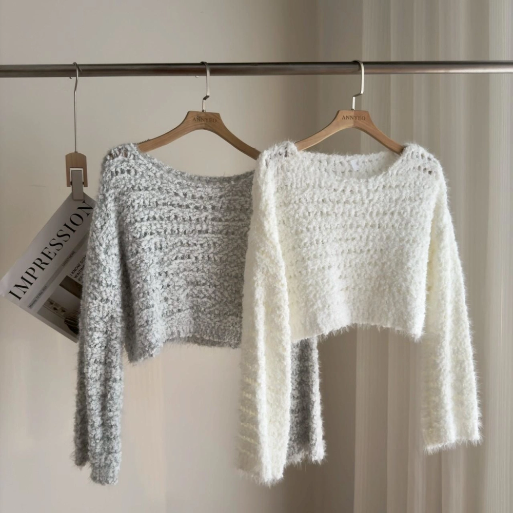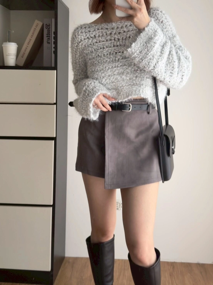 • 奶糯糯小格洞短板毛衣