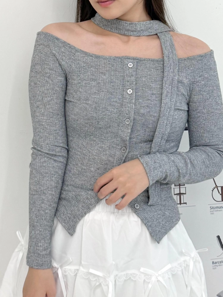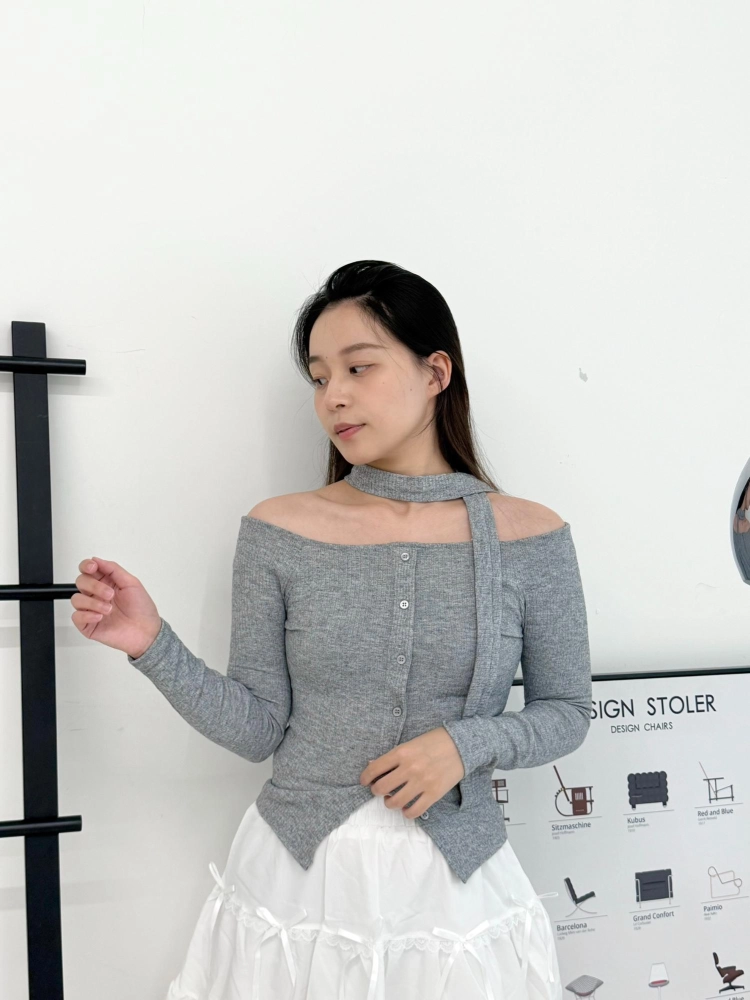 平口小露鎖骨剛剛好 彈性針織貼合身形超顯瘦🩰