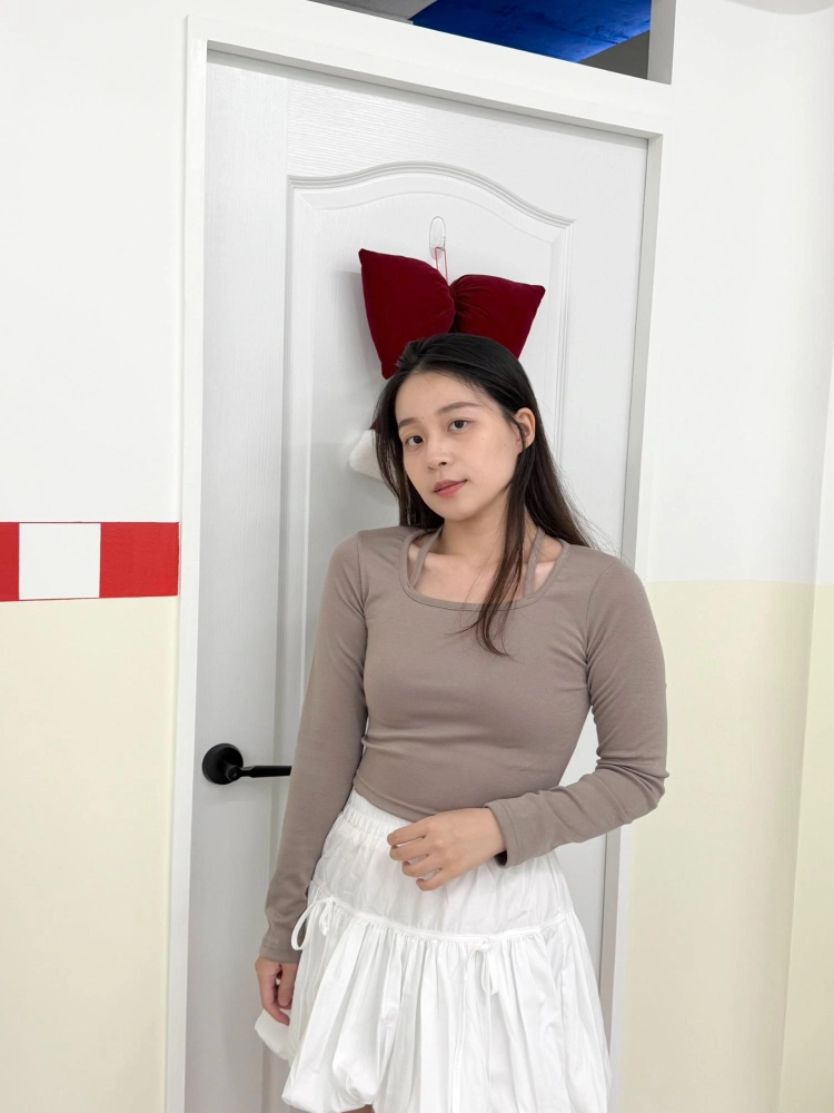 單穿是韓妞感十足 加外套整個變溫柔系(๑>◡<๑)