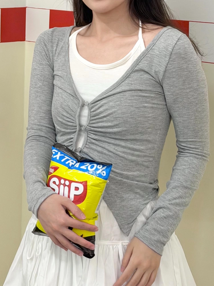 胸前褶皺細節修飾身形 彈力面料舒適包覆不緊繃