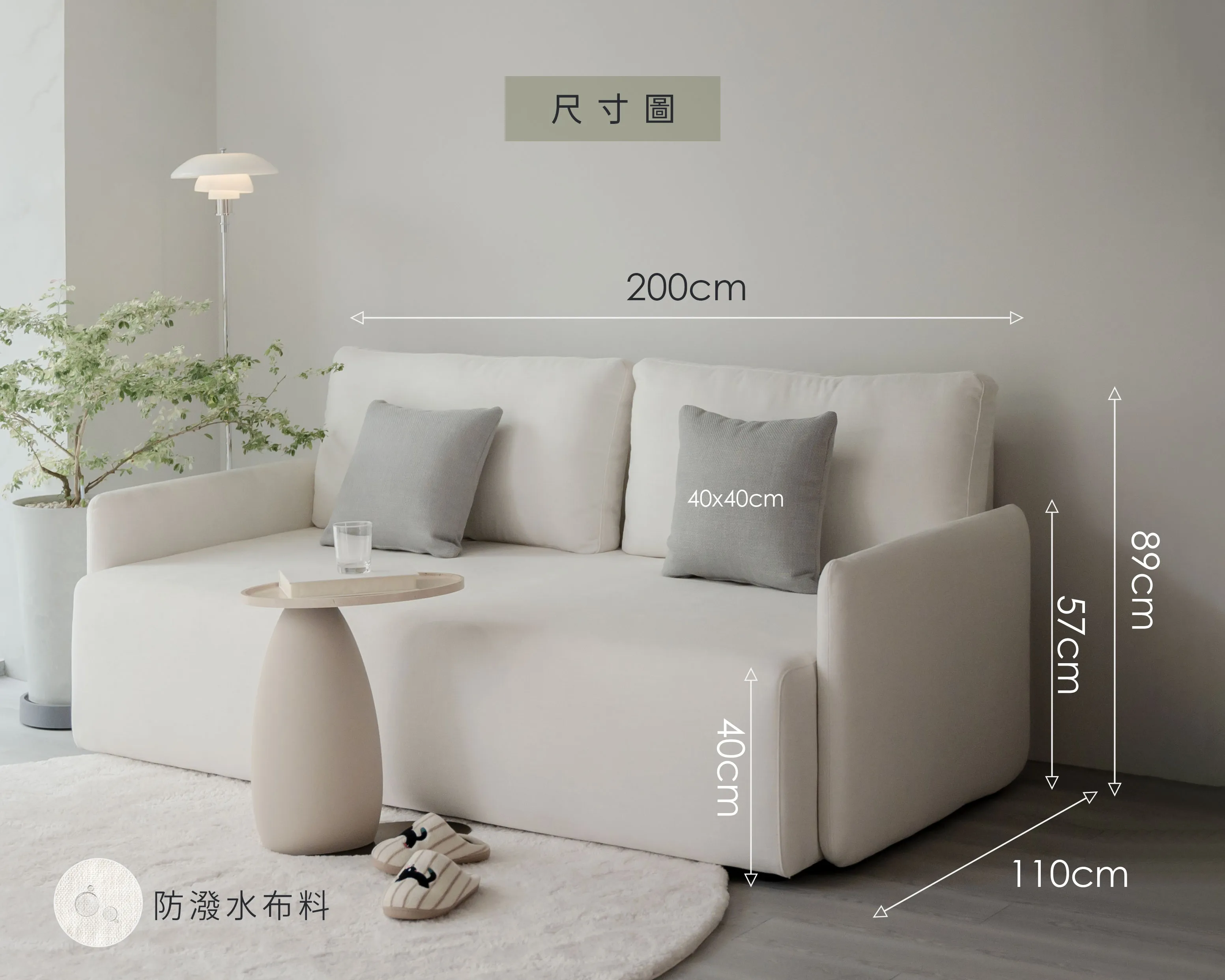 整體尺寸:W200 × D110 × H89 cm