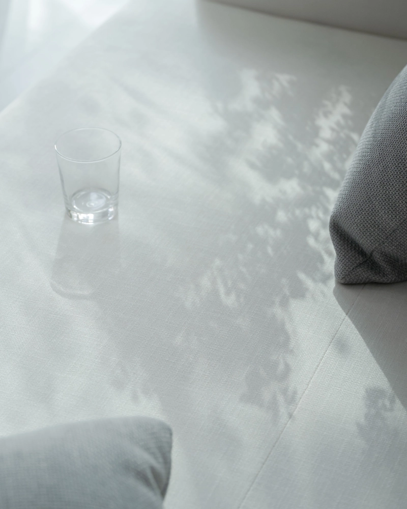 亞麻白色布面:有細緻的纖維紋理,帶有天然的微霧感光澤