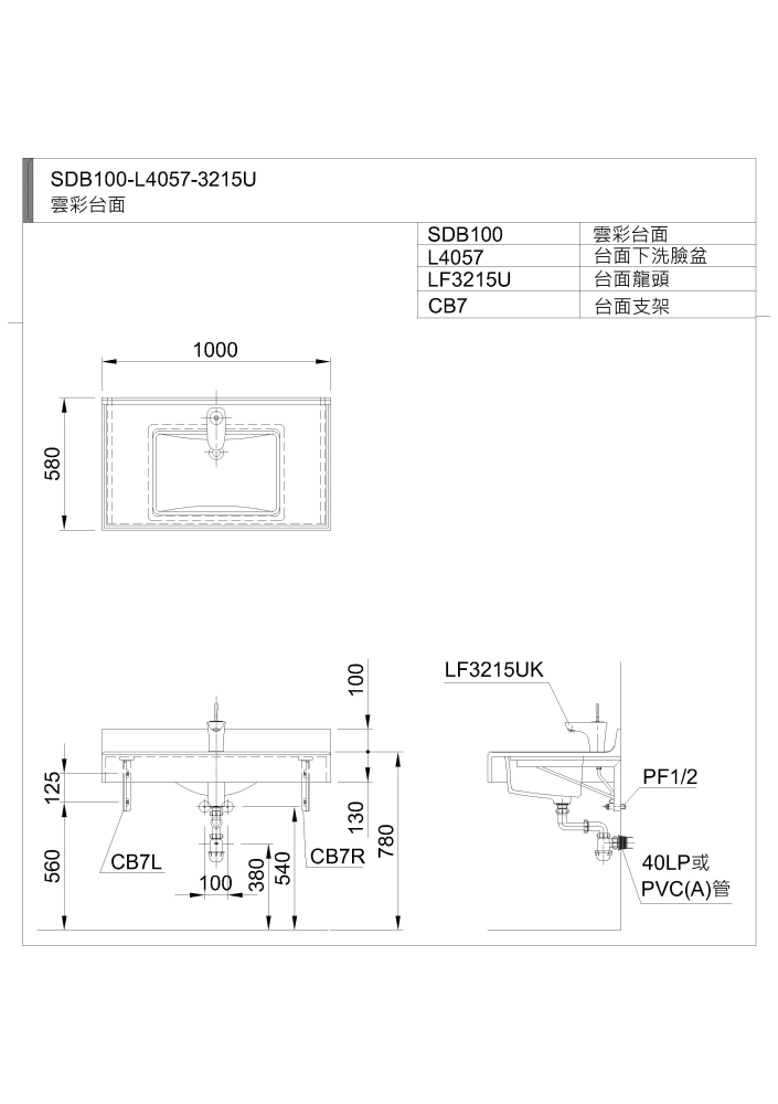 SDB180:1800x580x230mm (雙盆式) / NT$ 24,000